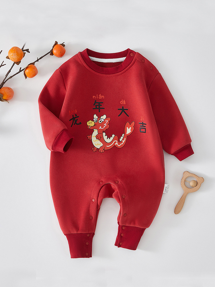婴儿连体衣春季男女宝宝加绒连体衣婴儿爬服龙年外出保暖可爱爬服