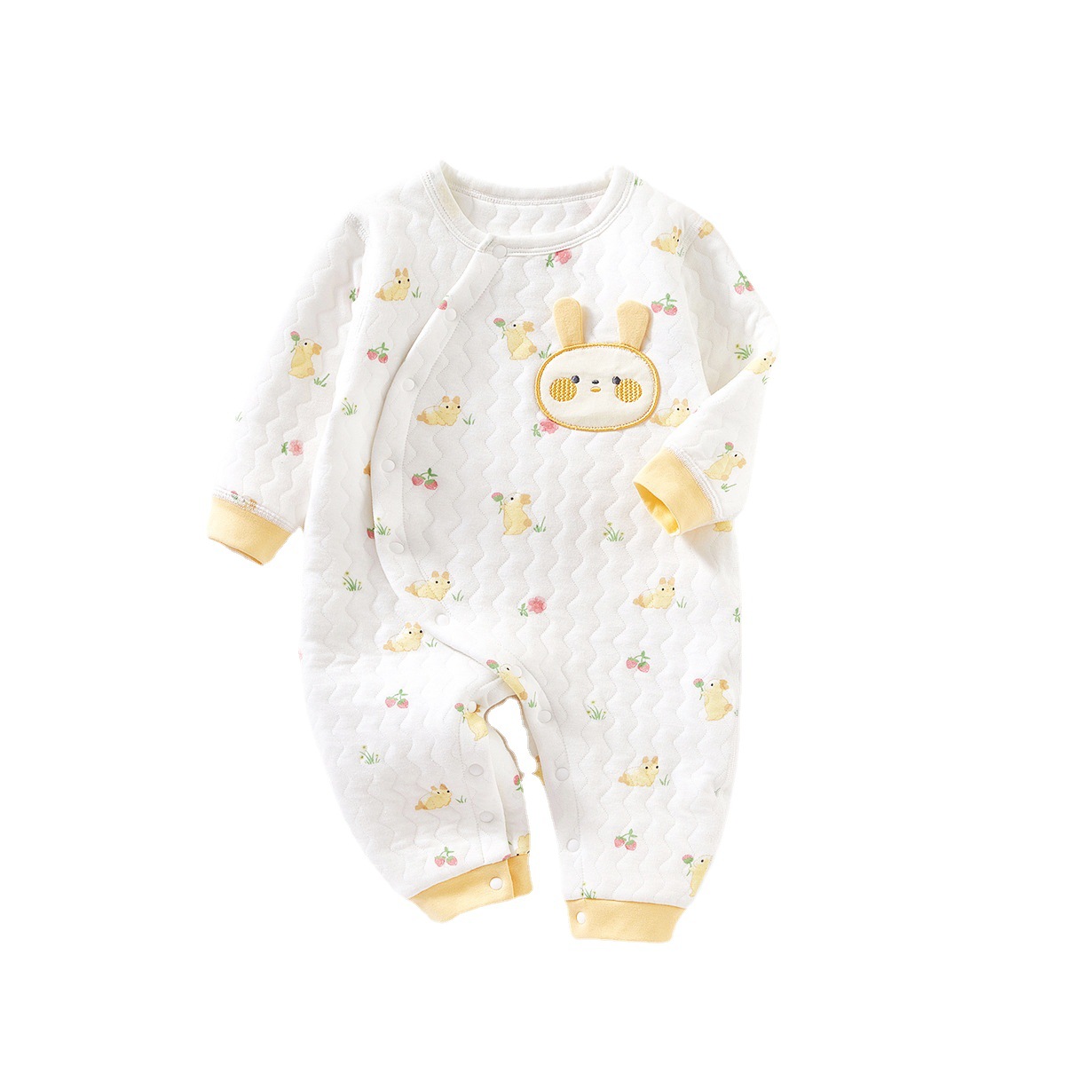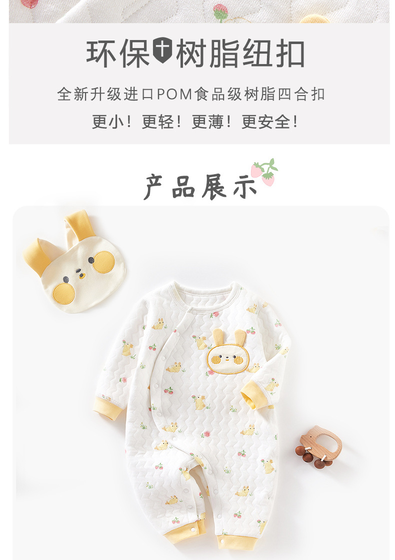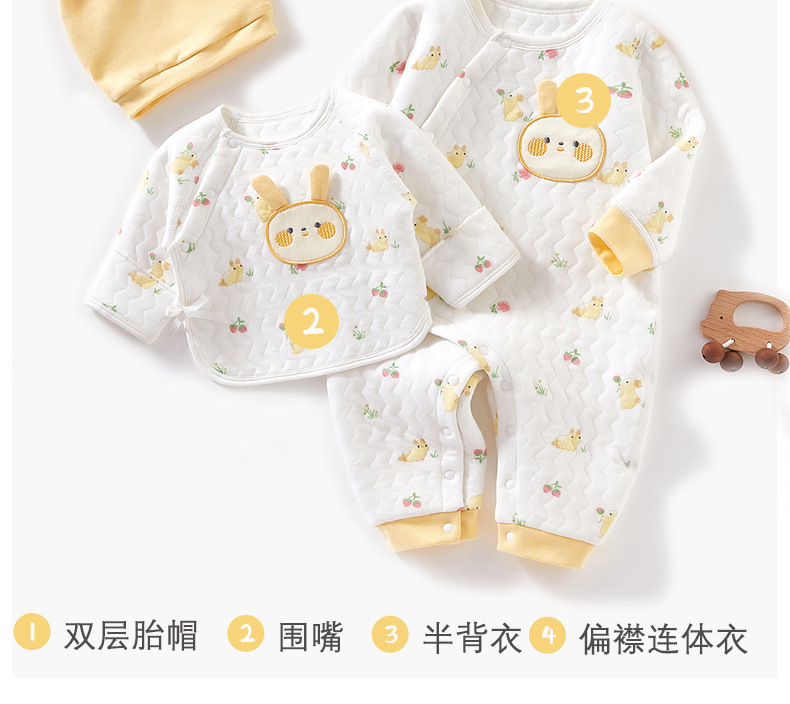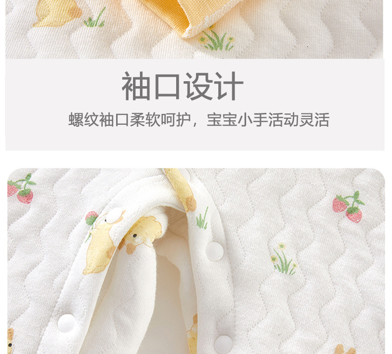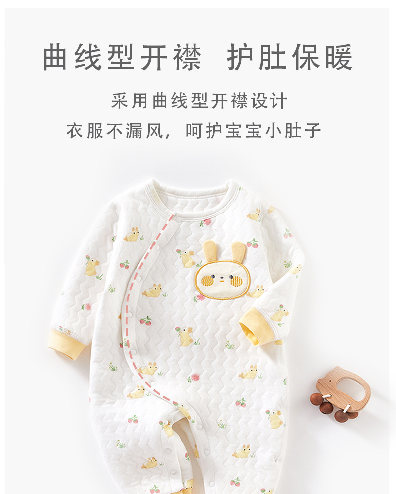 春秋季宝宝连体衣婴儿夹棉三层保暖曲线哈衣新生儿纯棉满月衣服