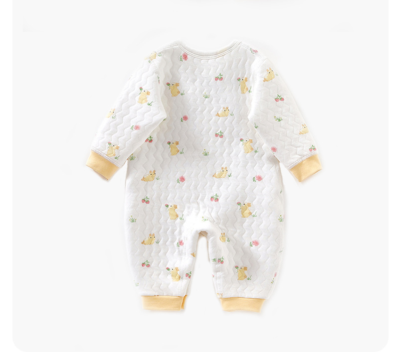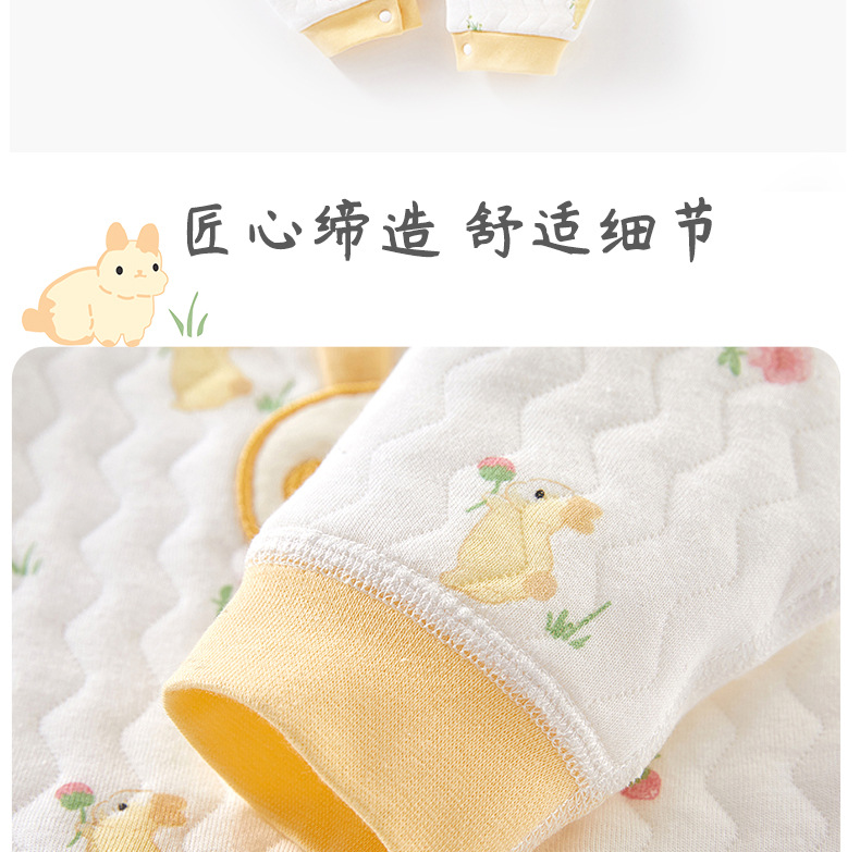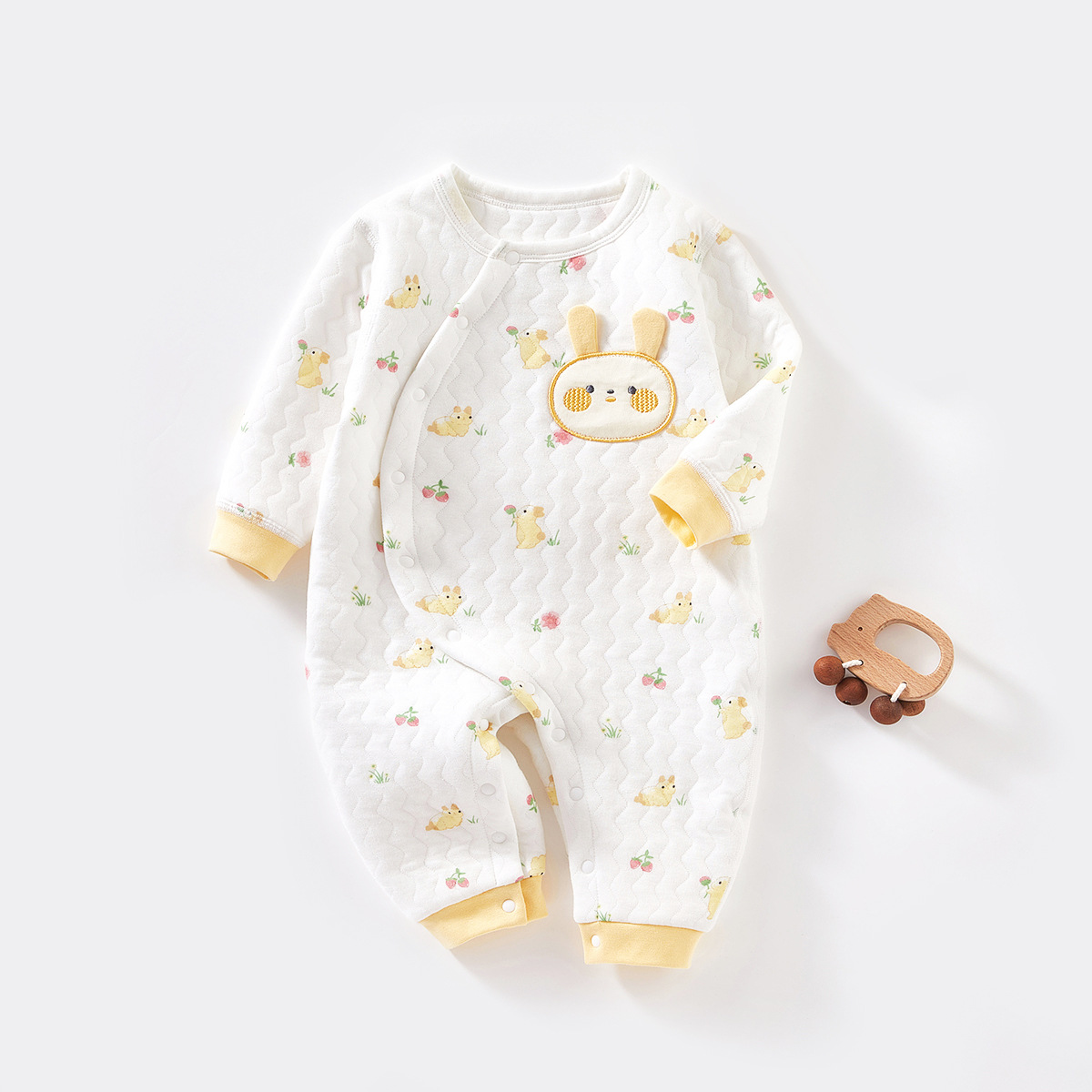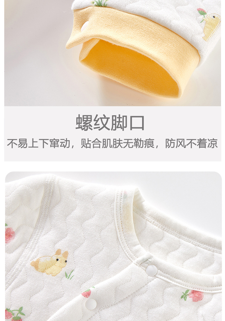 春秋季宝宝连体衣婴儿夹棉三层保暖曲线哈衣新生儿纯棉满月衣服