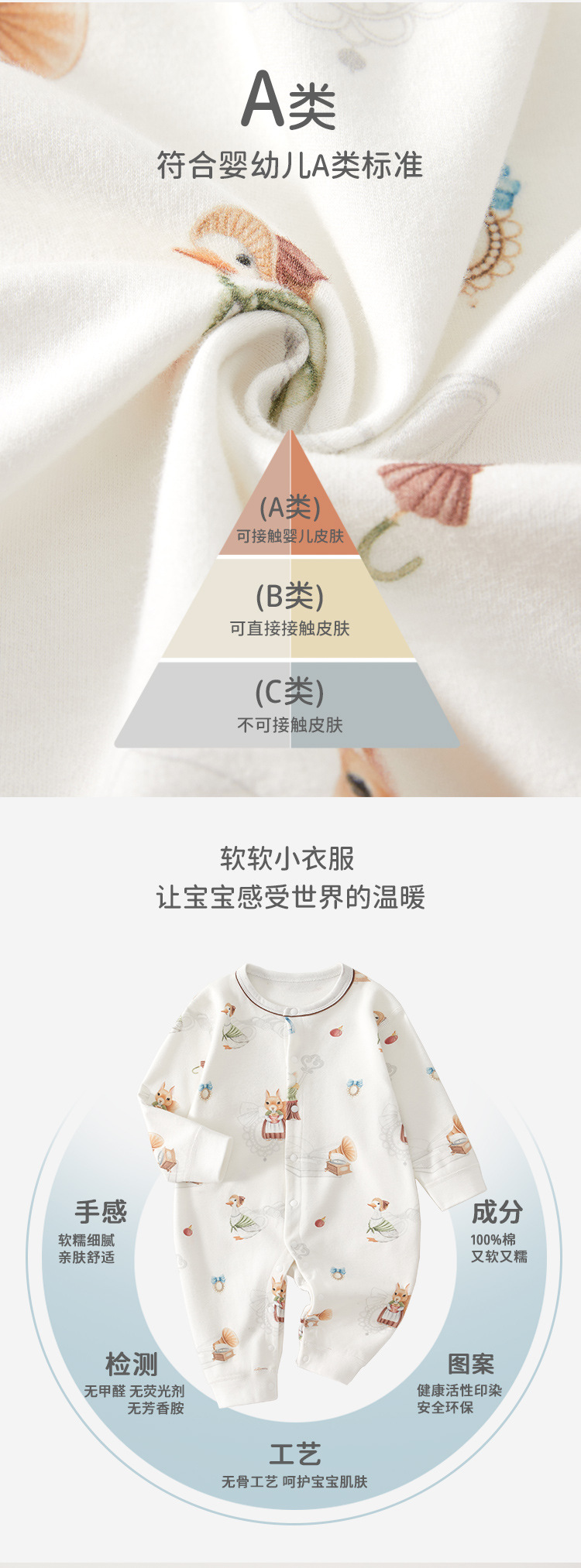婴儿连体衣a类春秋宝宝满月衣服纯棉睡衣长袖家居服婴儿外出哈衣