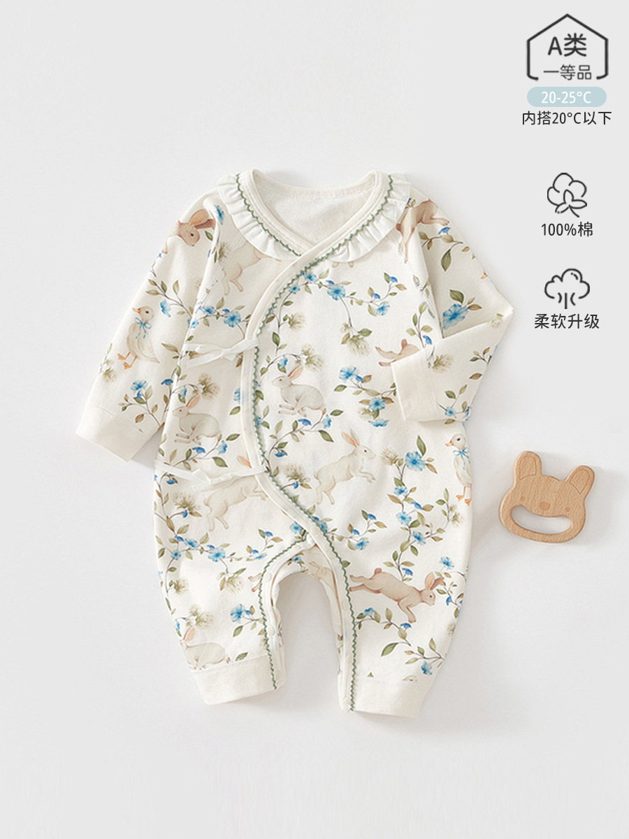 婴儿连体衣婴幼儿春季纯棉百天宝宝新生儿衣服女宝宝婴儿爬服