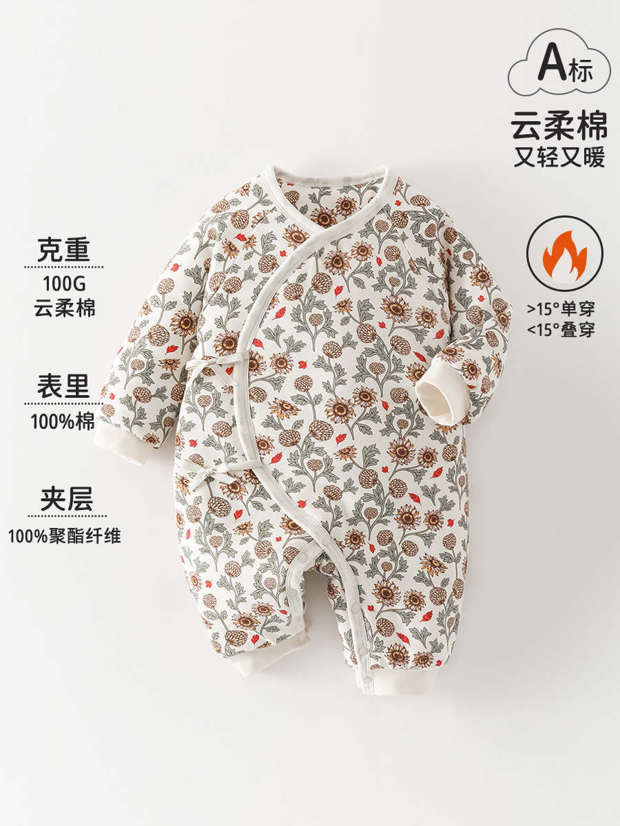 新生婴儿衣服秋冬季初生宝宝连体衣纯棉夹棉加厚哈衣爬服冬装