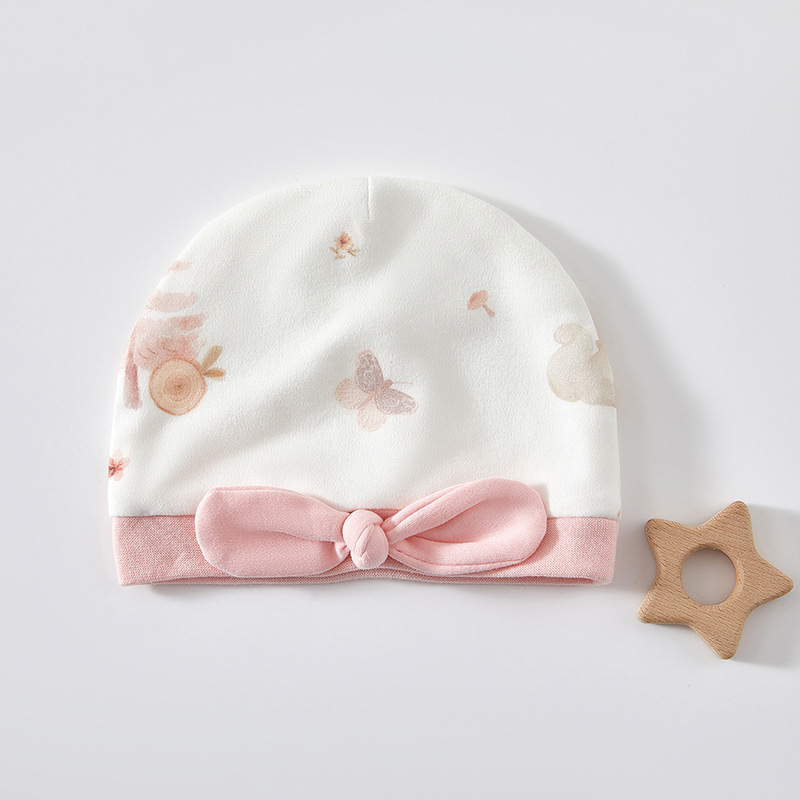 婴儿帽子春秋超萌蝴蝶结套头帽新生儿宝宝秋天出游护卤门胎帽