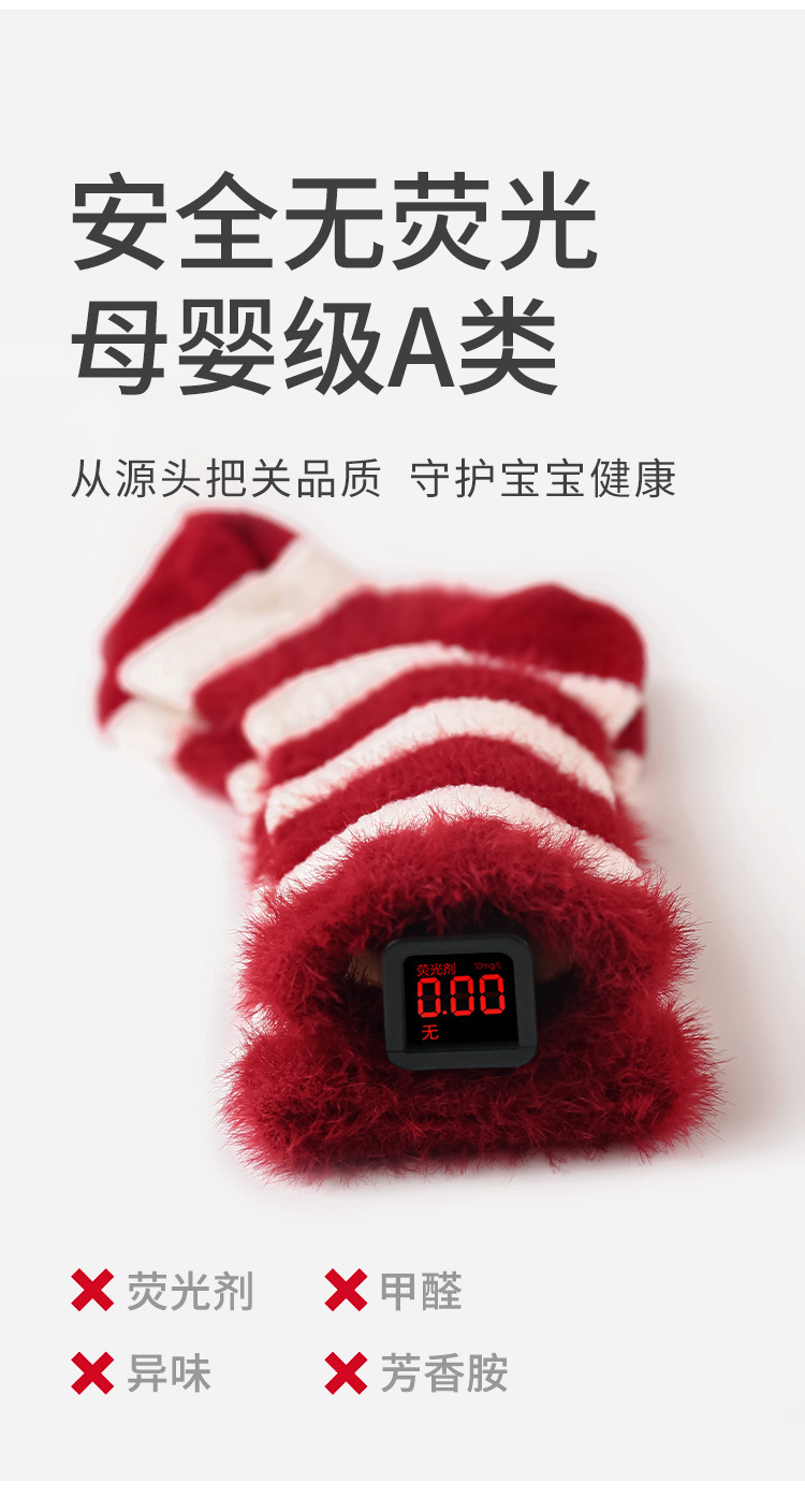 冬季新品婴儿袜子大红色保暖宝宝新年周岁满月无骨中筒袜圣诞袜