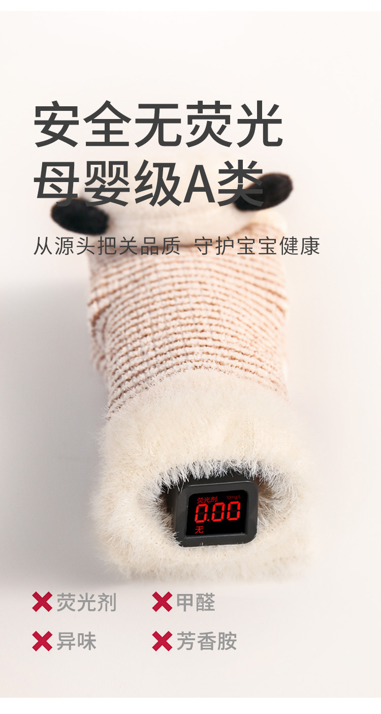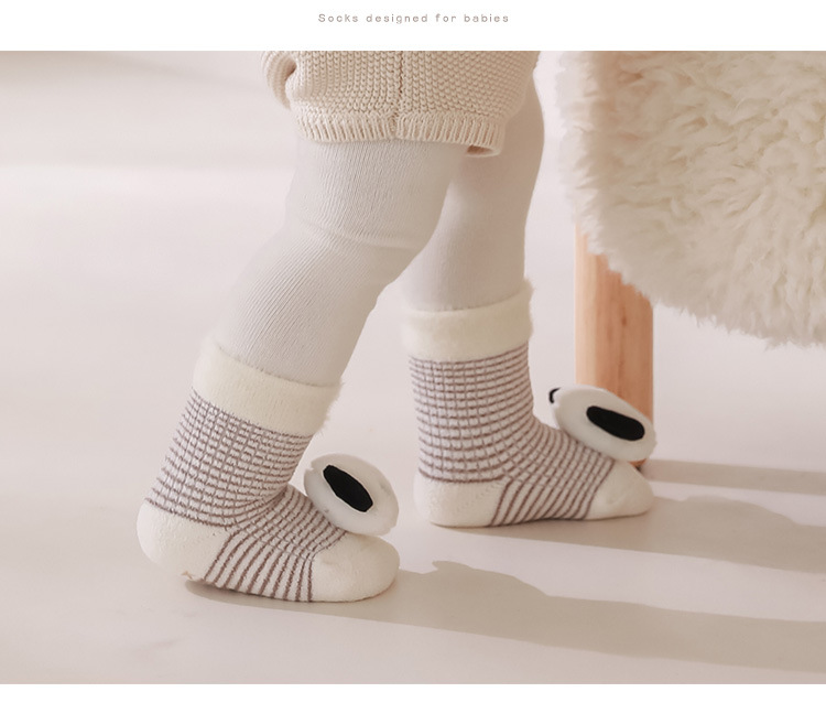 新生儿宝宝袜子冬季加厚加绒可爱卡通公仔袜婴儿室内防滑学步袜子