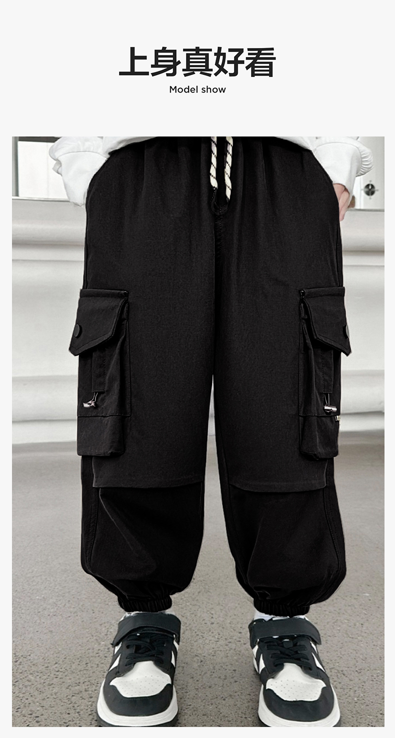男童裤子春秋款2025新款儿童大童秋季男孩秋装痞帅阔腿休闲工装裤