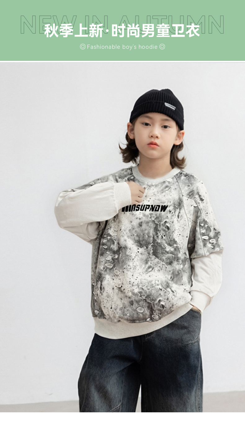 男童卫衣春秋款2025新款儿童秋装假两件上衣中大童男孩秋季打底衫