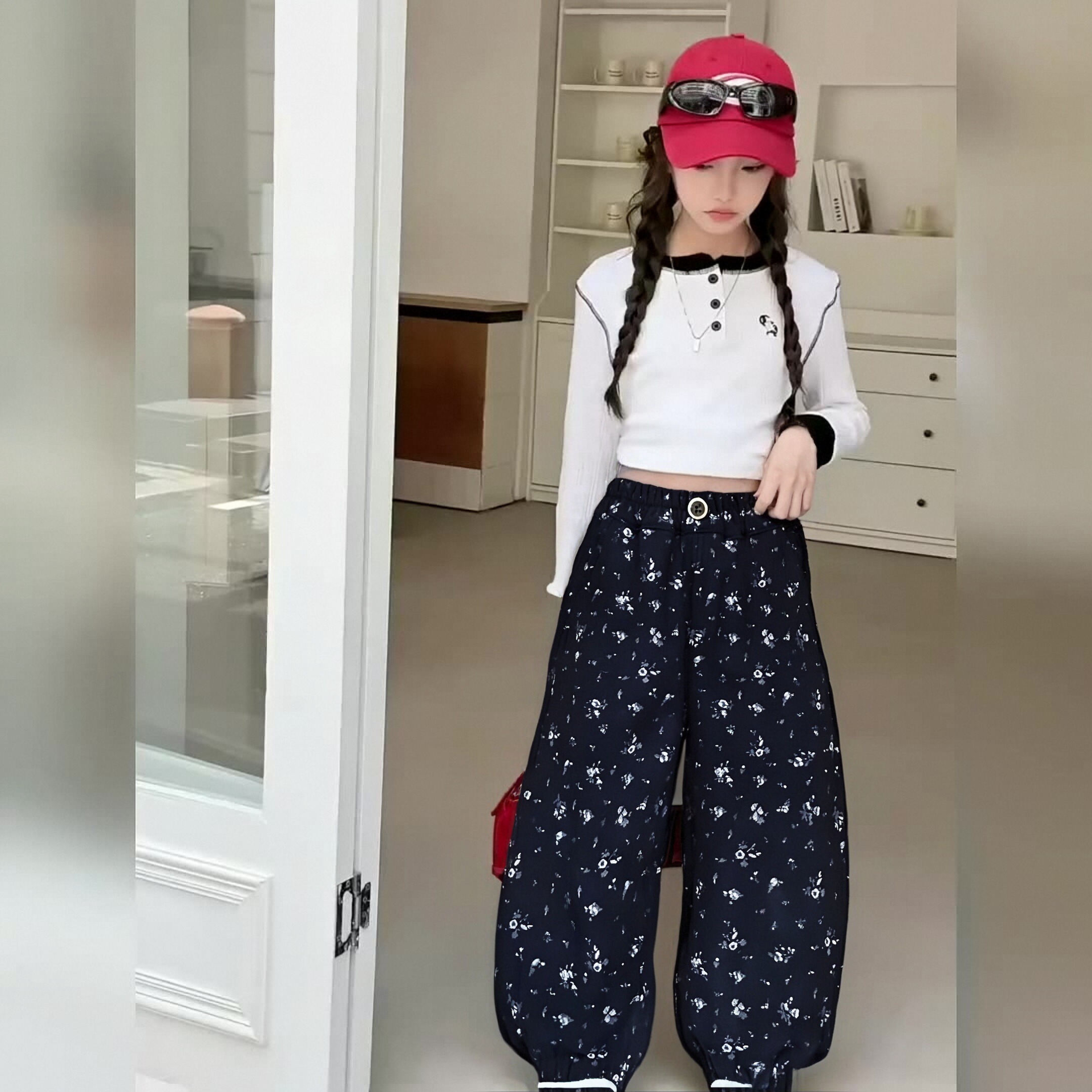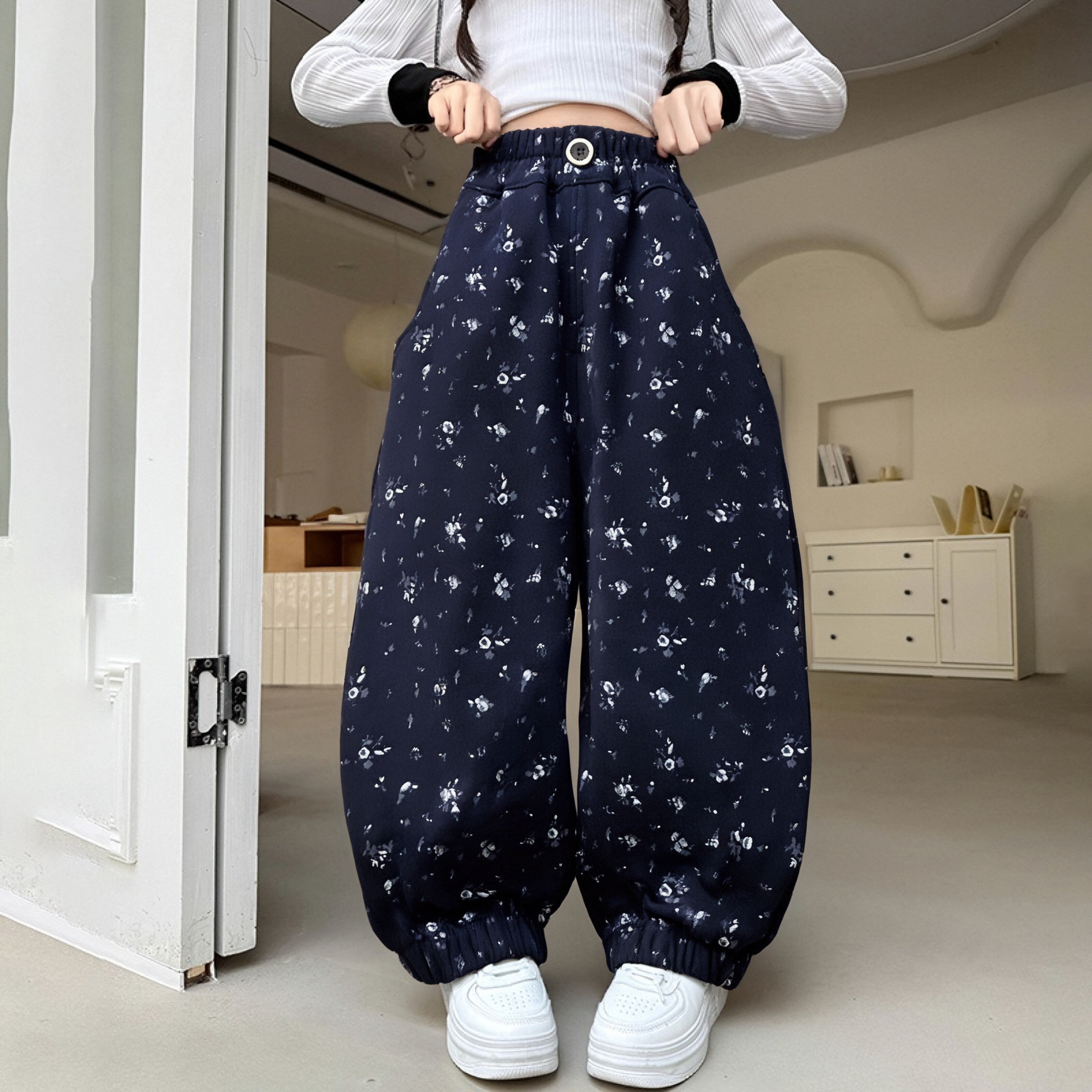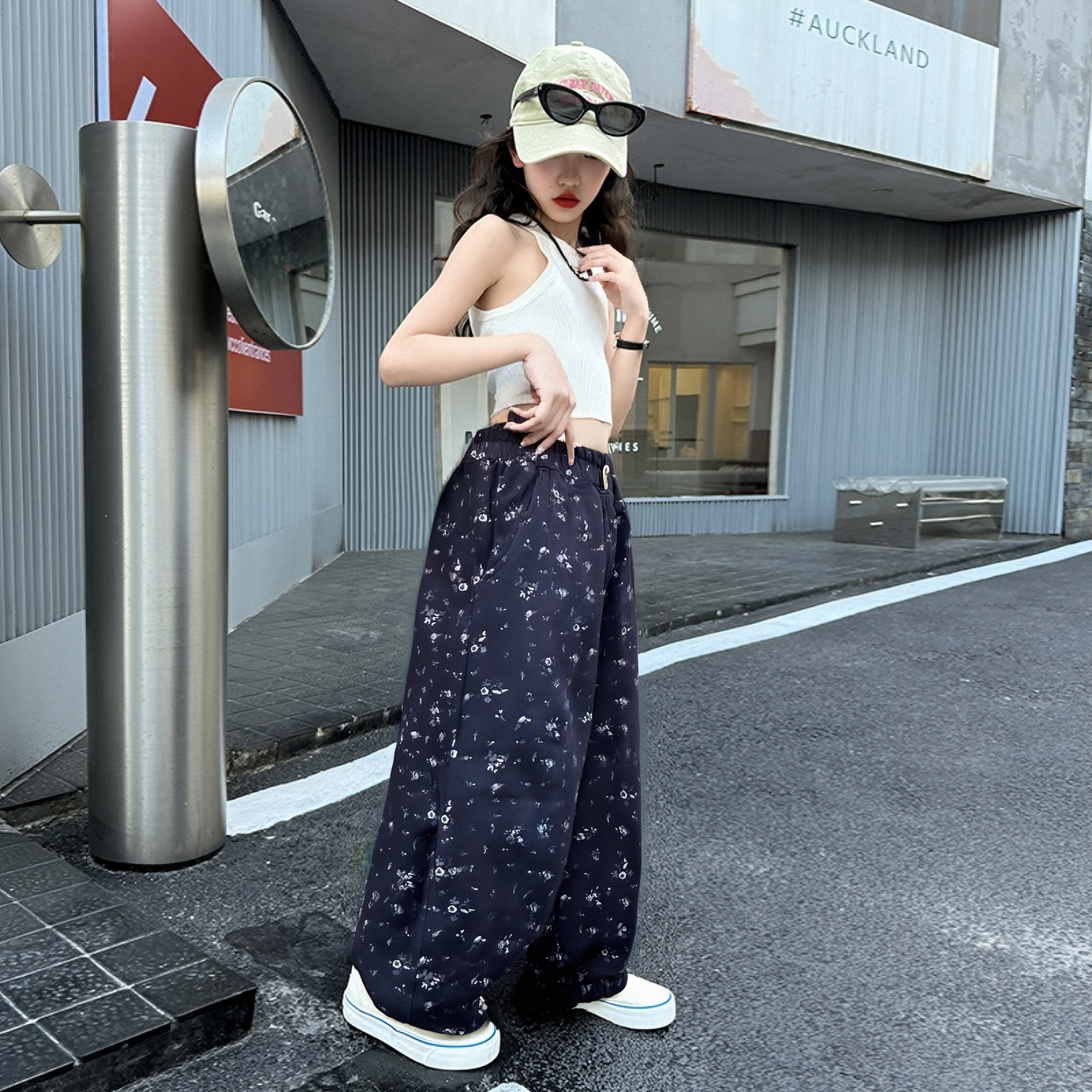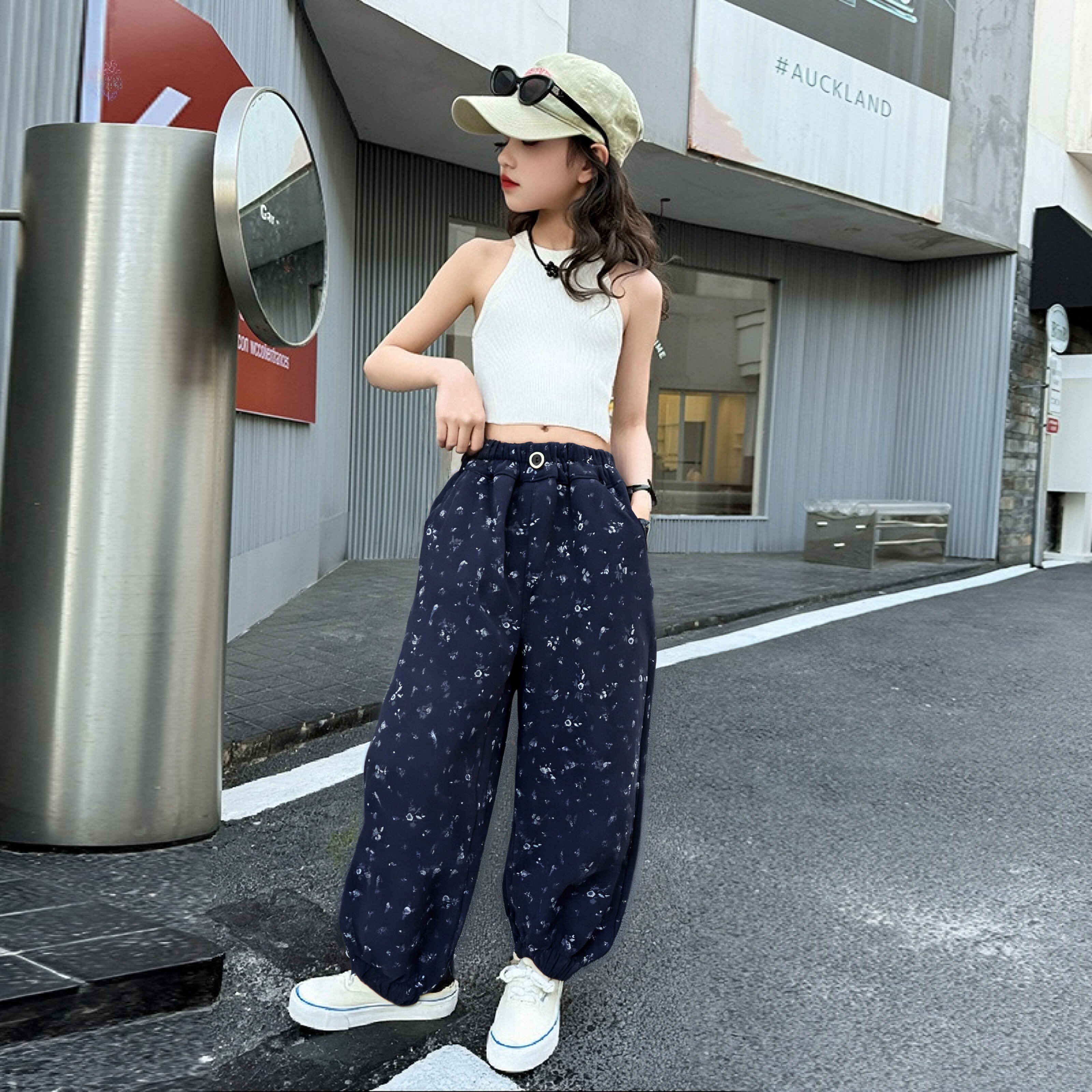 女童超火休闲裤春秋装女大童百搭卫裤初中生秋季运动弯刀阔腿裤子