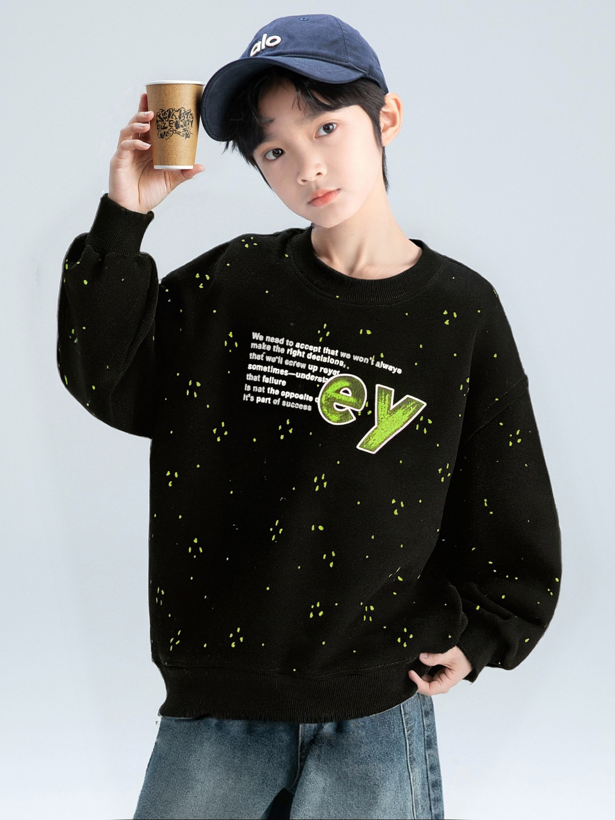 男童秋装卫衣春秋款2025新款儿童秋季黑色痞帅气时髦炸街上衣潮酷