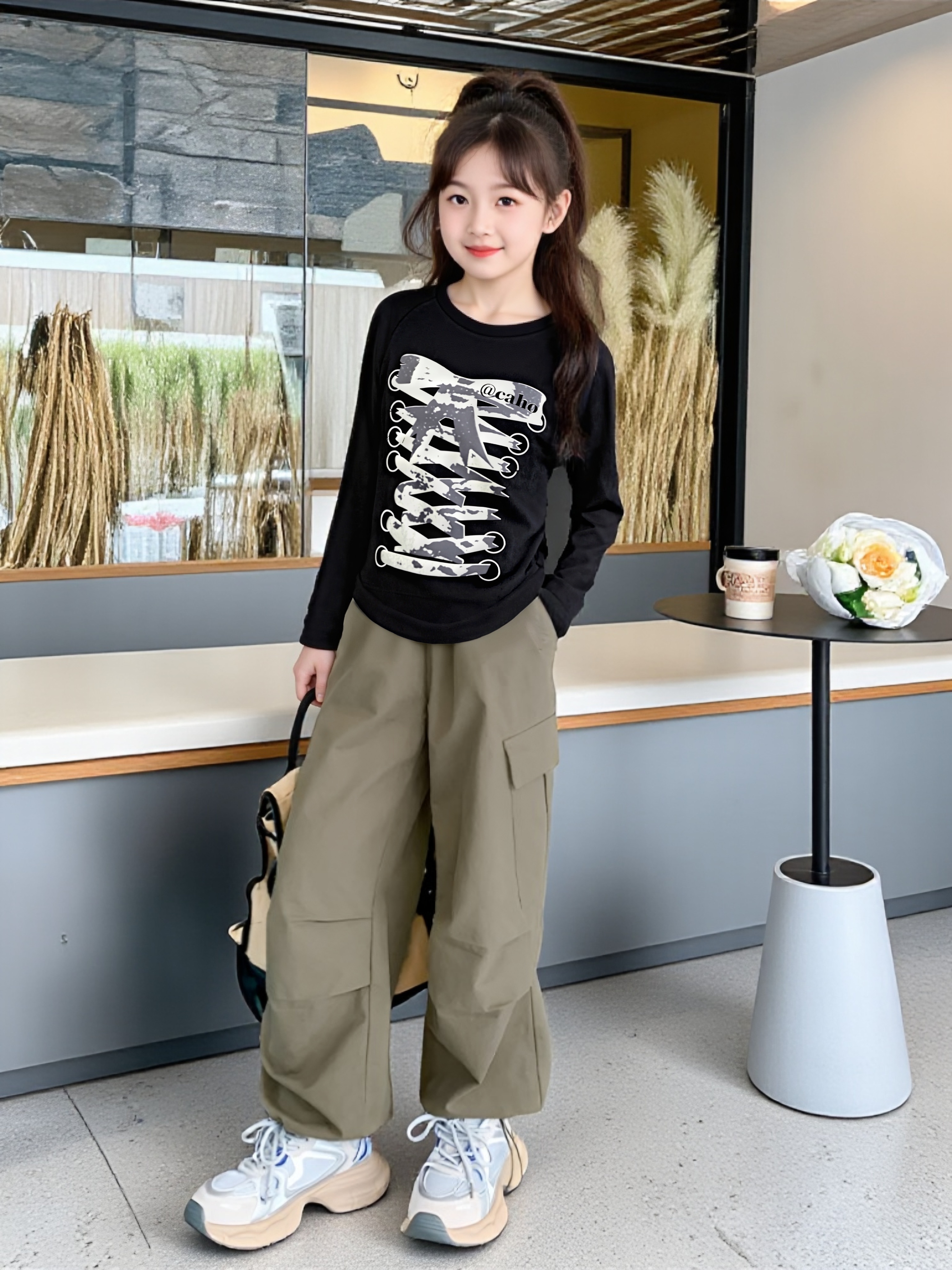 女童长袖t恤儿童韩系打底衫秋季2025新款内搭上衣大童女孩T恤秋装