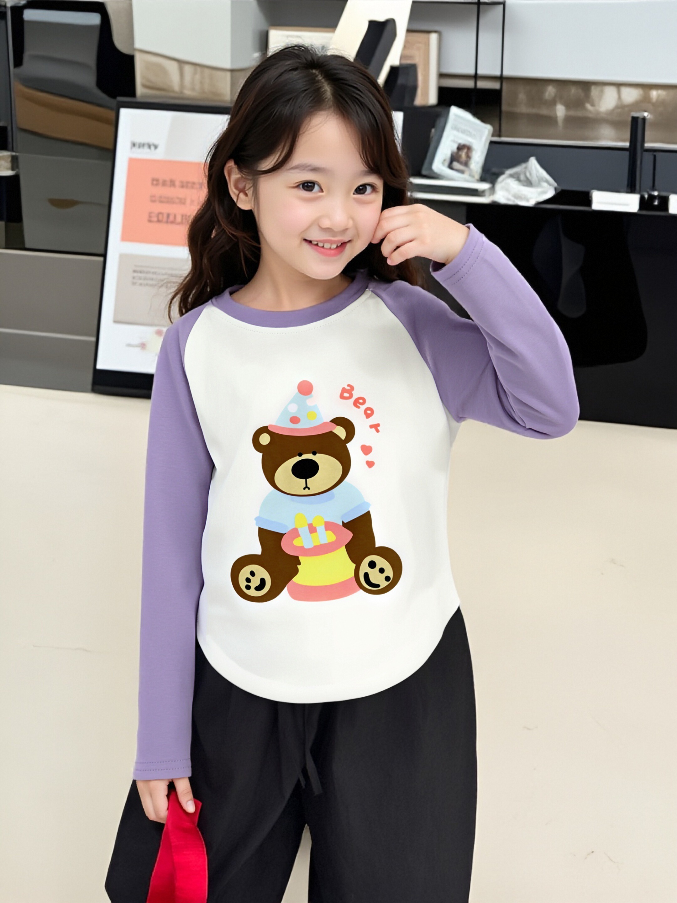 女大童秋装T恤洋气2025新款中小学生儿童上衣短款春秋打底衫韩范