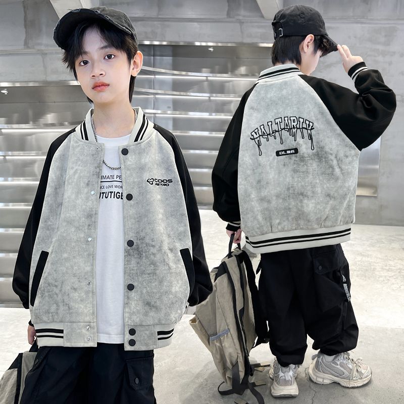 男童春装外套2025新款中大童男孩春秋款运动棒球服帅气潮