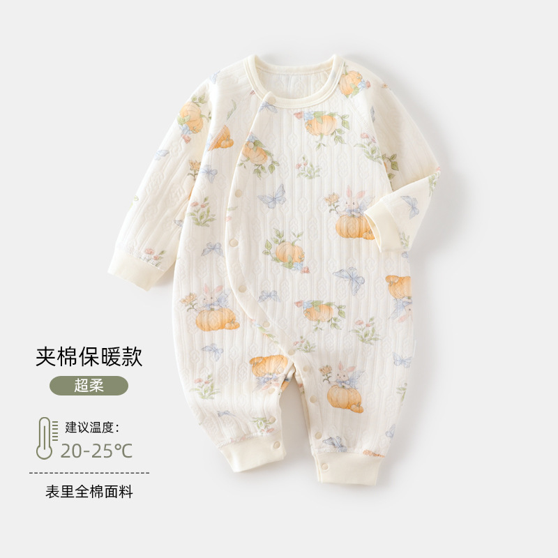 婴儿连体衣秋冬款打底宝宝爬服无骨新生儿连体衣夹棉保暖婴儿衣服