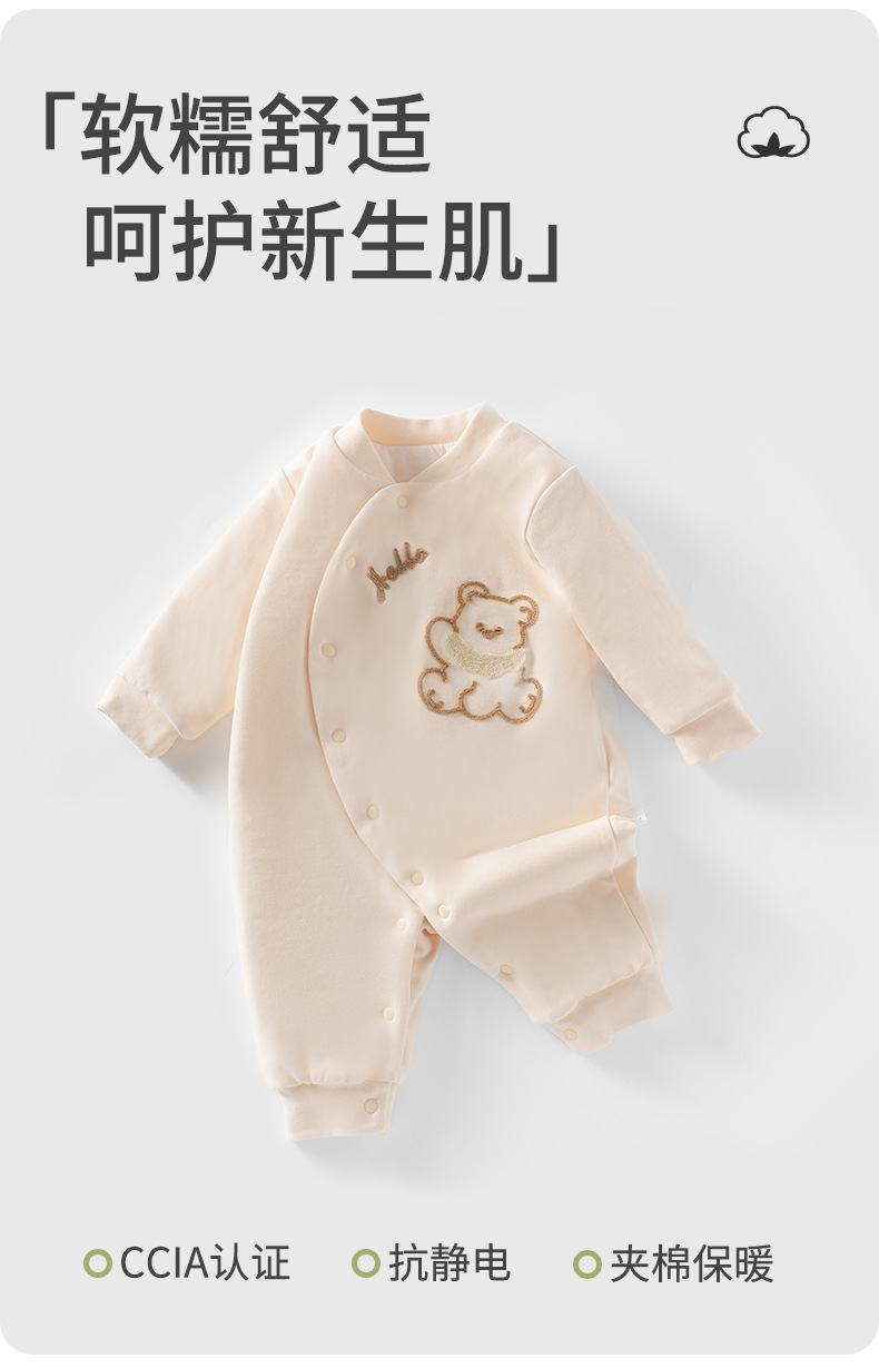 新生儿连体衣初秋薄棉哈衣a类纯棉童装宝宝衣服60克夹棉蝴蝶衣
