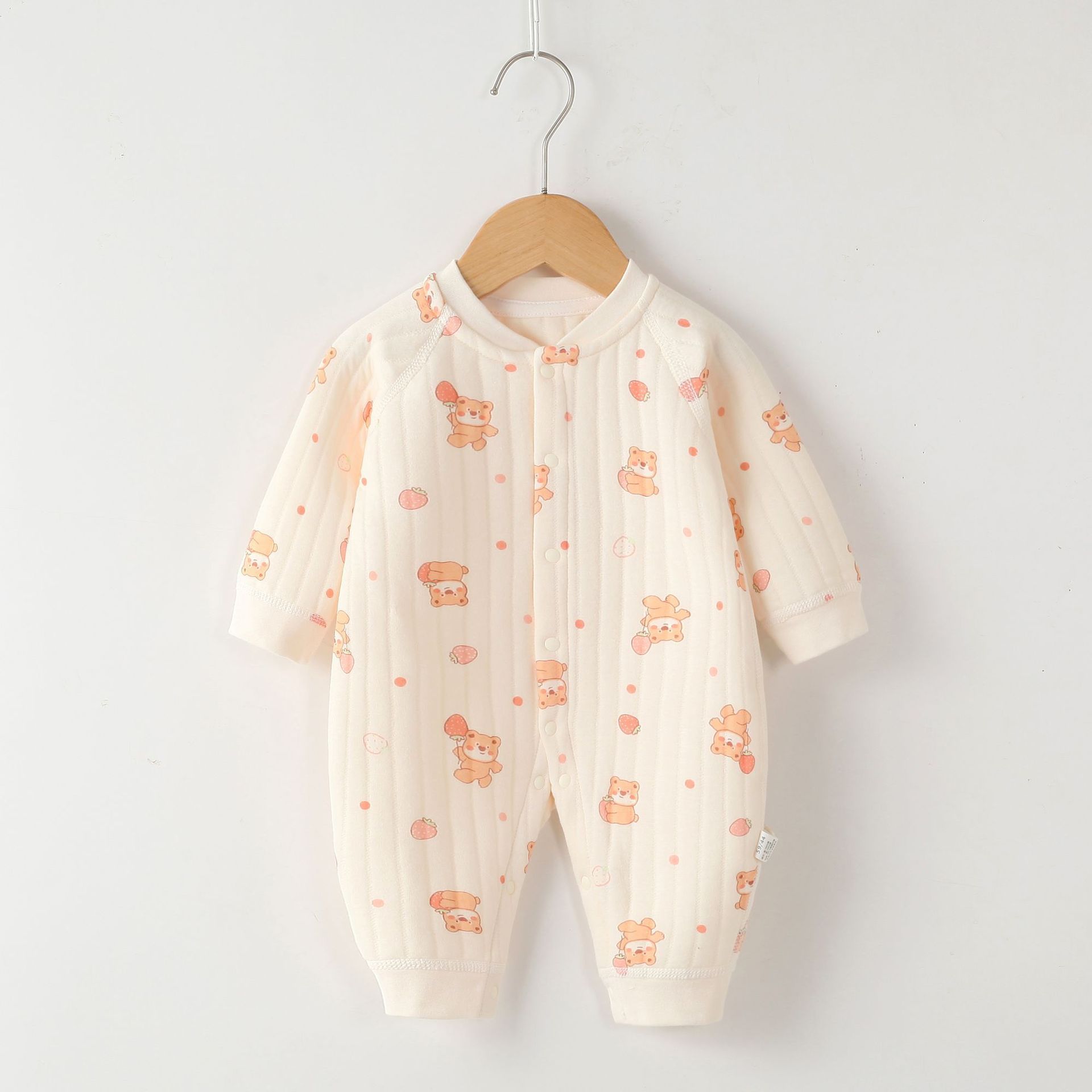 婴儿连体衣服秋冬季衣服夹棉保暖纯棉新生儿男女宝宝睡衣哈衣爬服