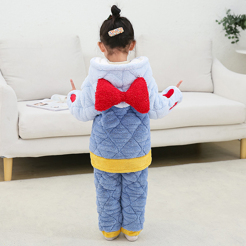 儿童睡衣女童冬季三层加绒加厚珊瑚绒可爱中小童女孩童套装家居服
