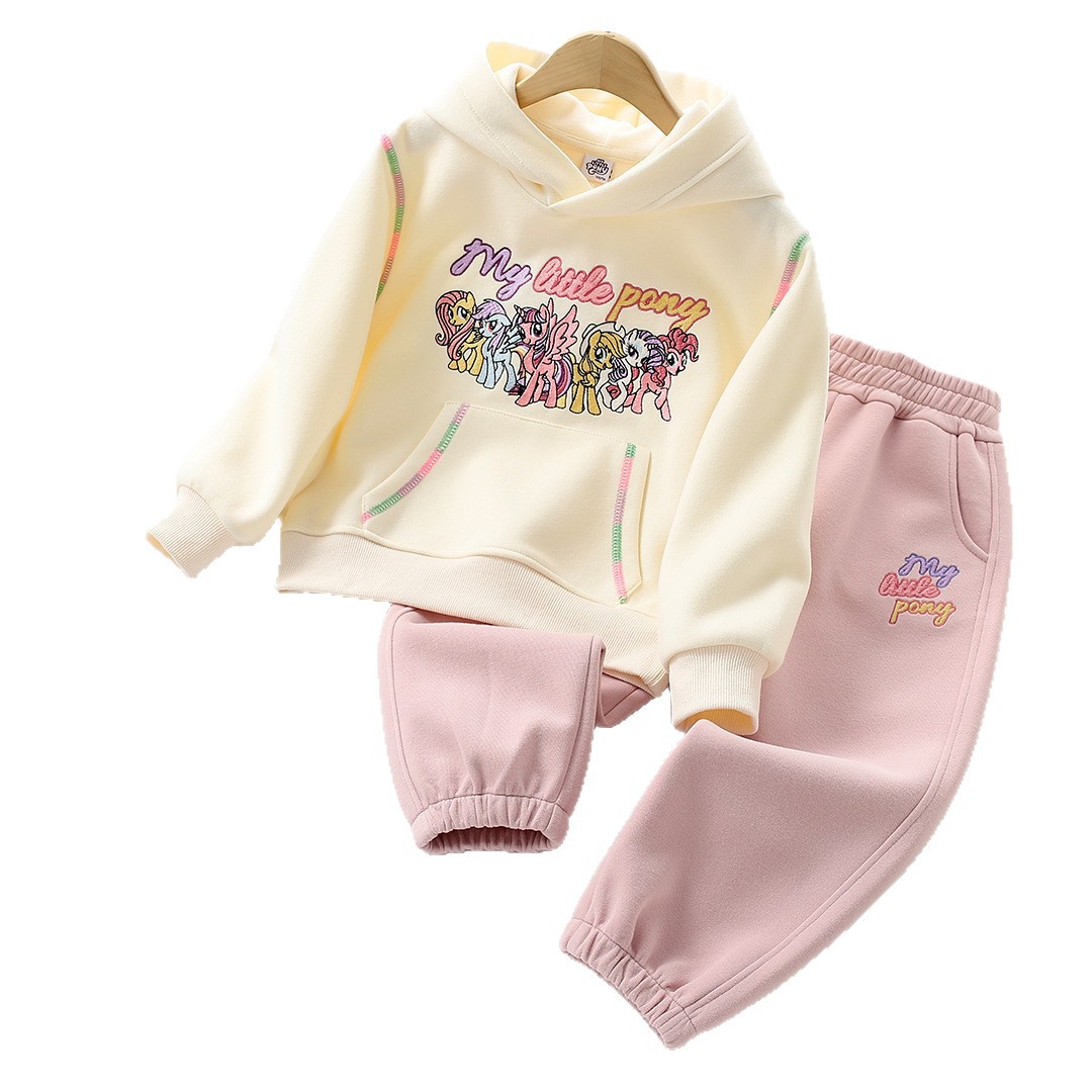 小马宝莉女童卫衣套装儿童连帽衫女宝秋装两件套粉色米色童装秋款