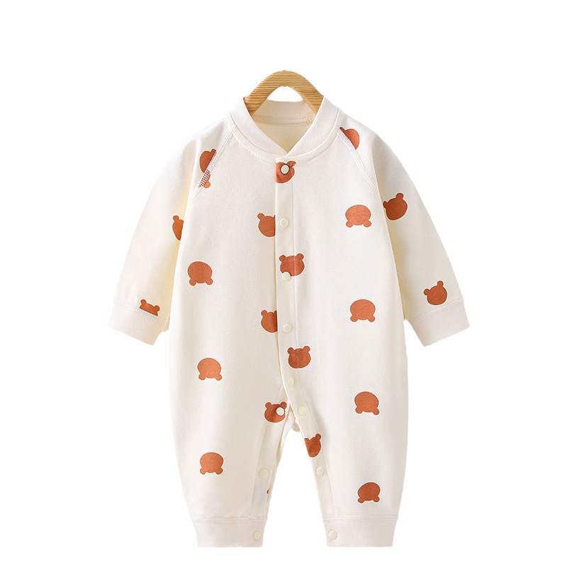 春秋新款婴儿衣服卡通纯棉新生儿连体衣长袖立领宝宝哈衣对开睡衣