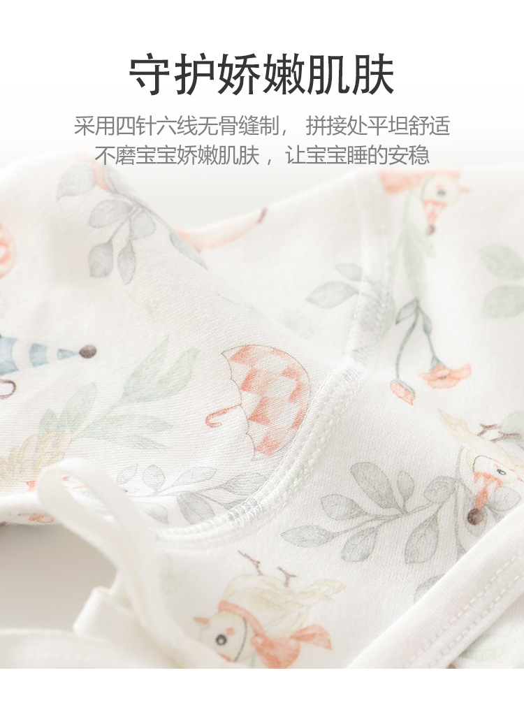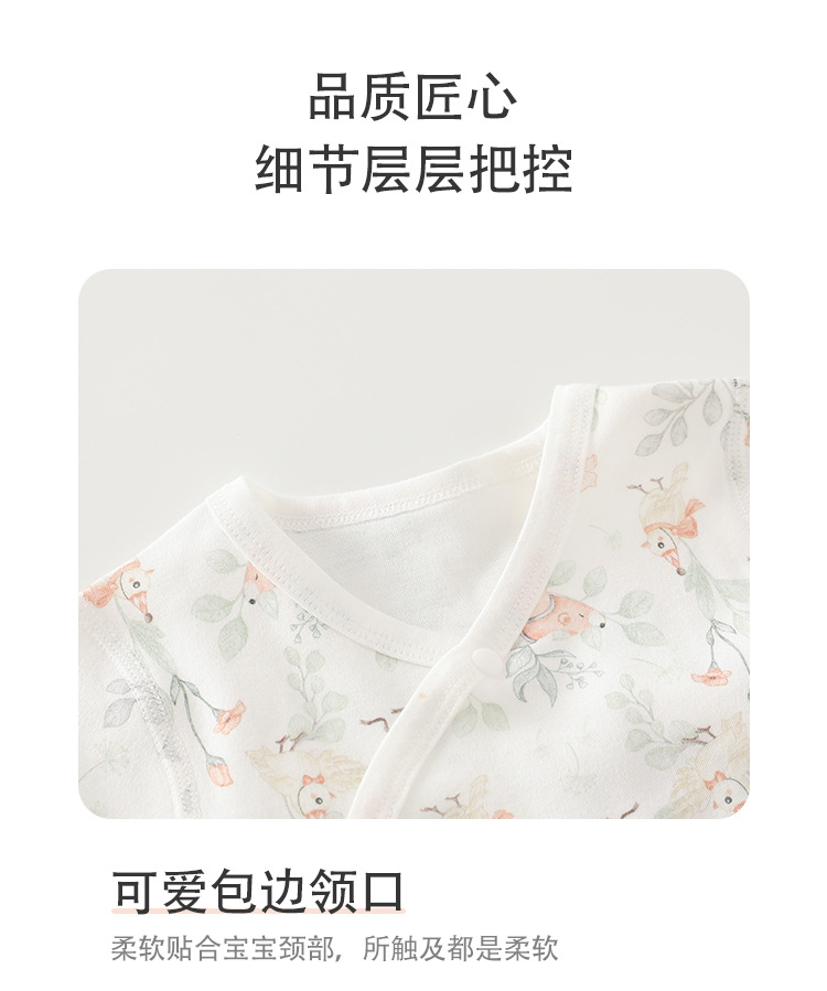 初生婴儿连体衣春秋纯棉宝宝哈衣和尚服三层保暖偏襟细带可爱翻领
