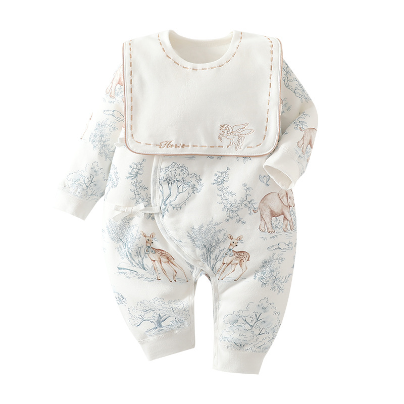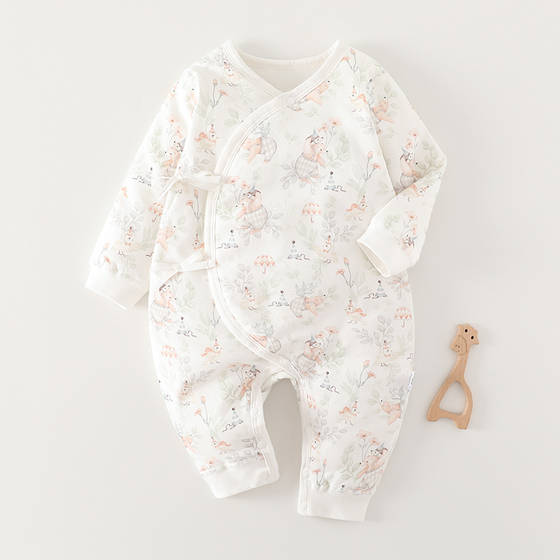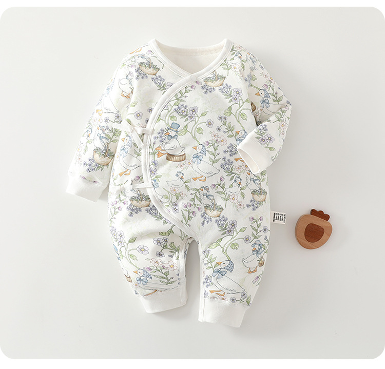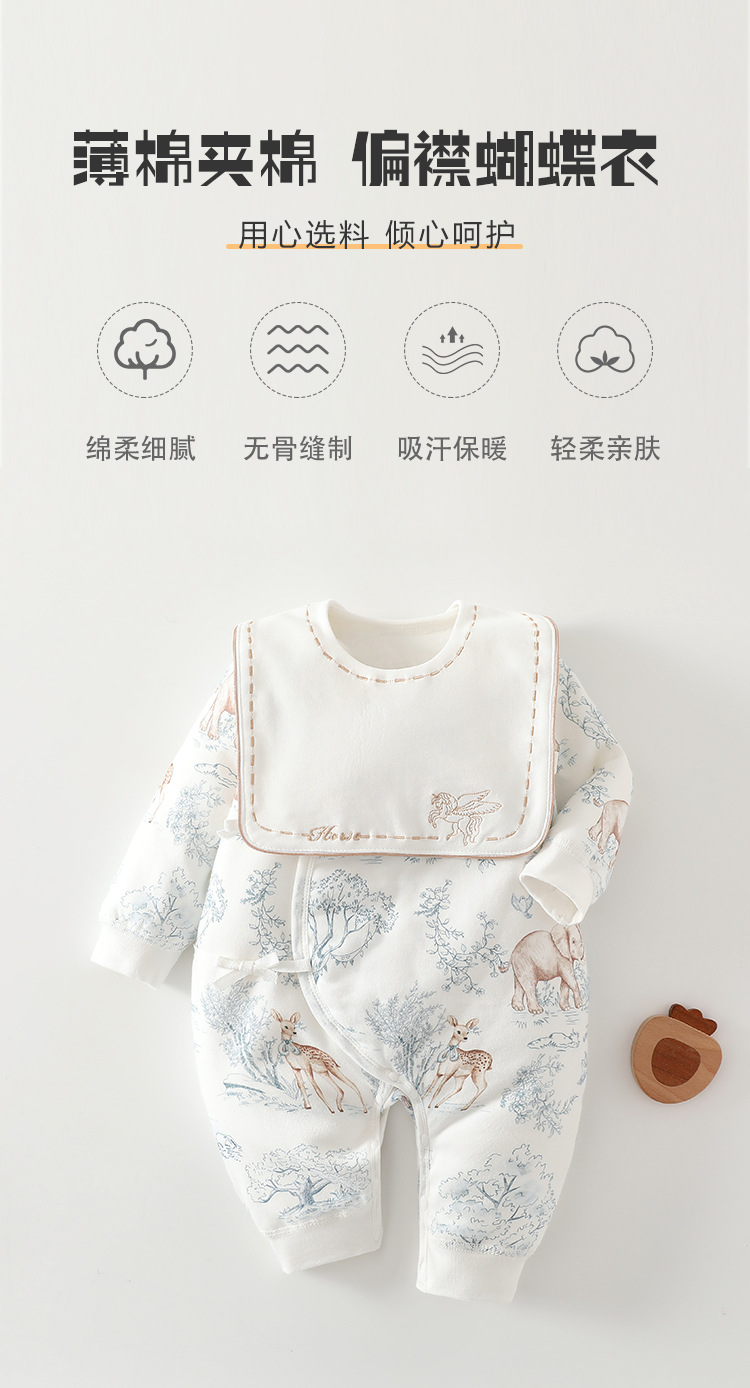 新生儿春秋连体衣衣服婴儿斜襟蝴蝶衣纯棉无骨宝宝哈衣洋气