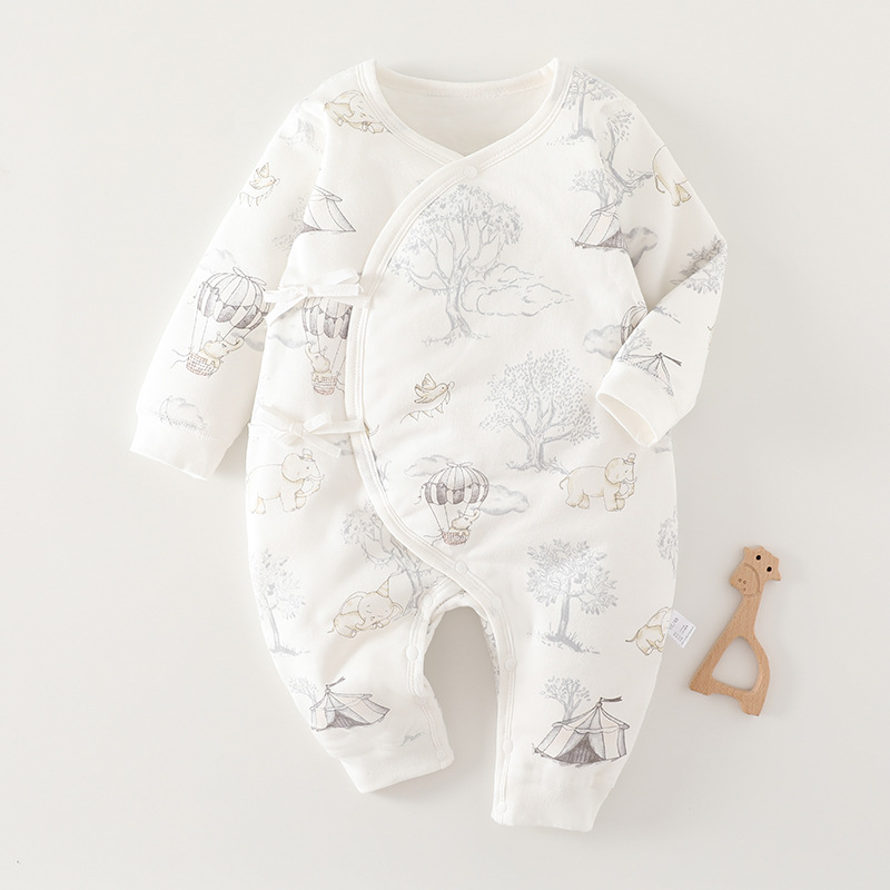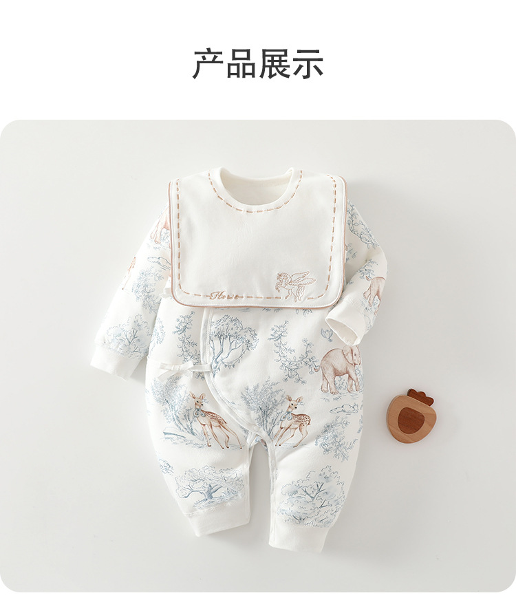初生婴儿连体衣春秋纯棉宝宝哈衣和尚服三层保暖偏襟细带可爱翻领