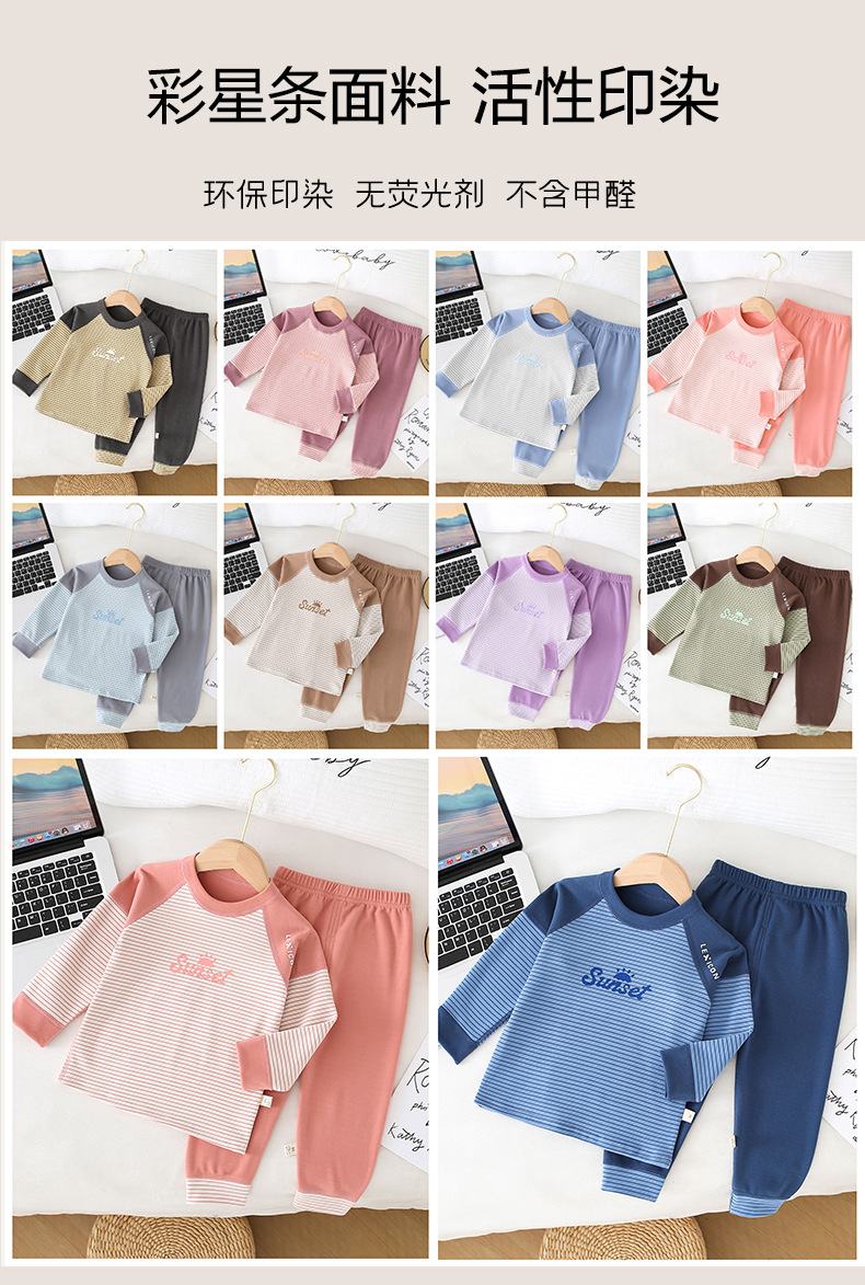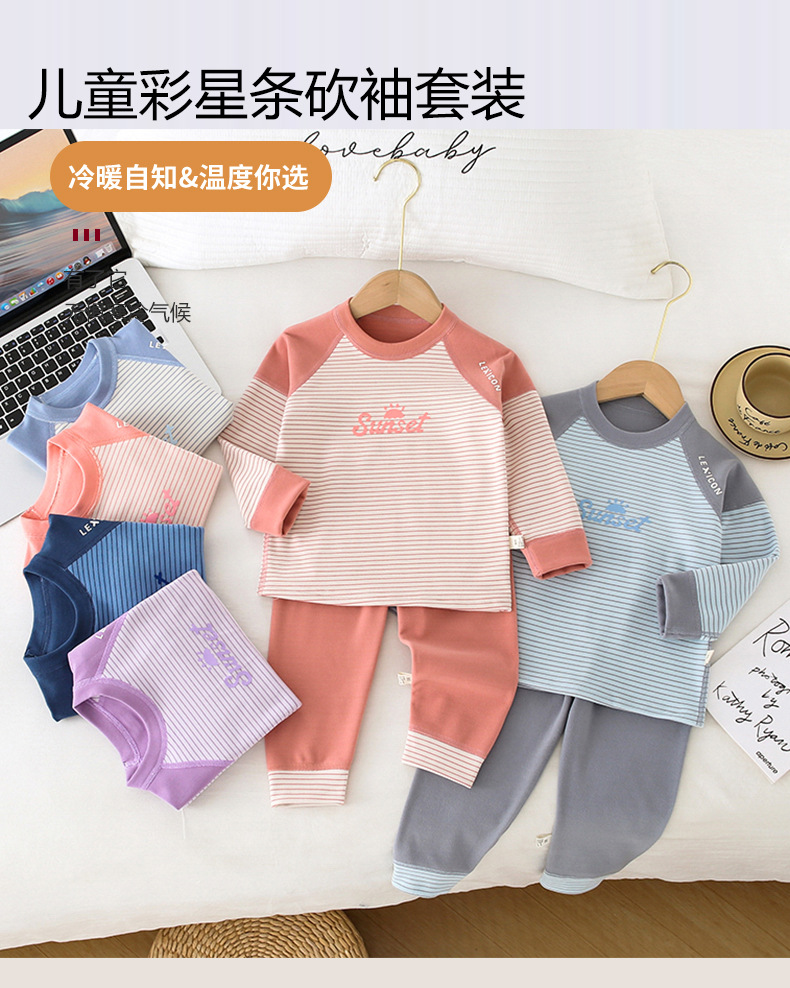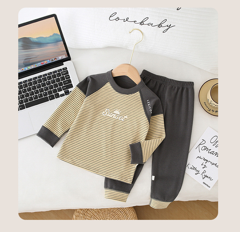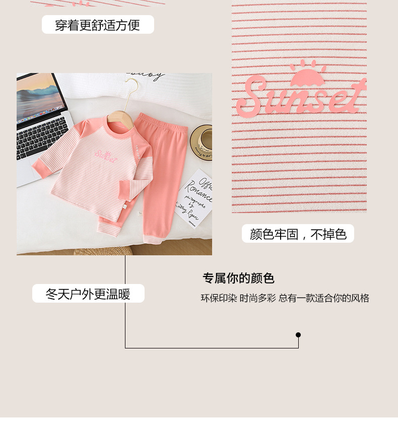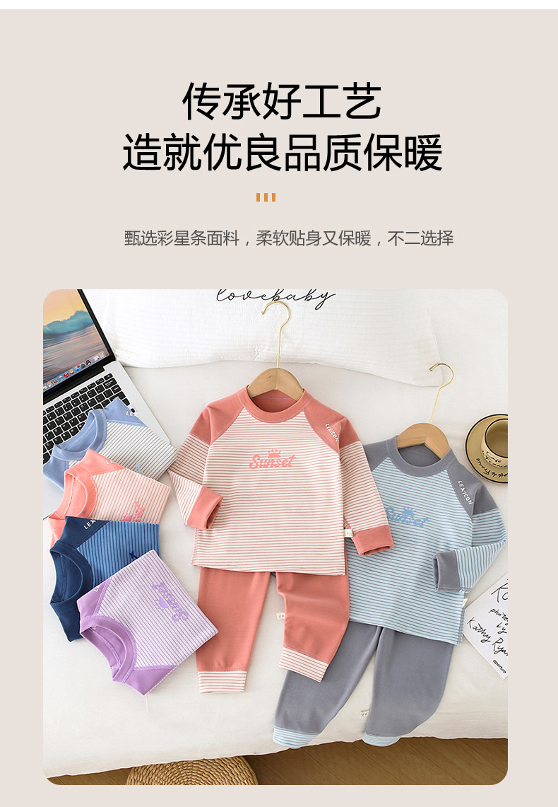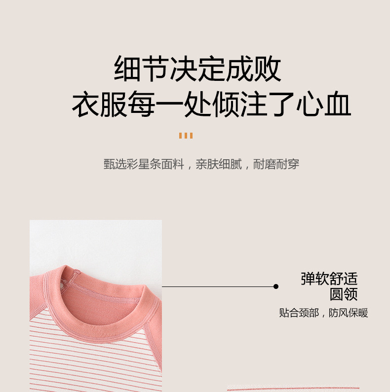 儿童条纹无骨保暖内衣套装男女童秋衣秋裤家居服