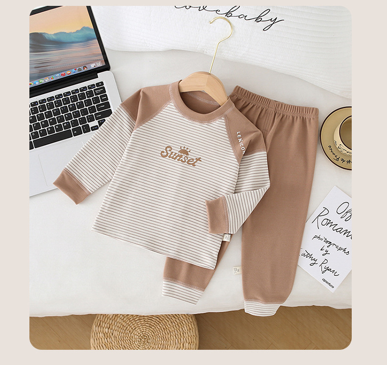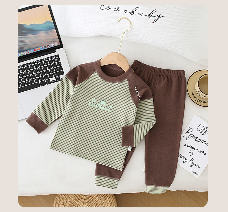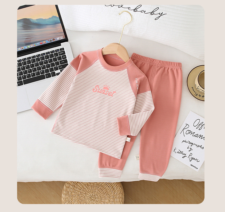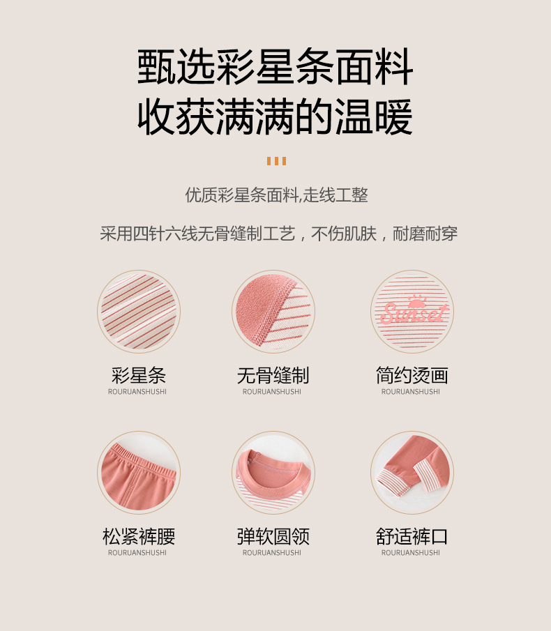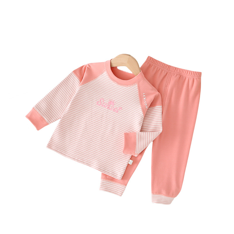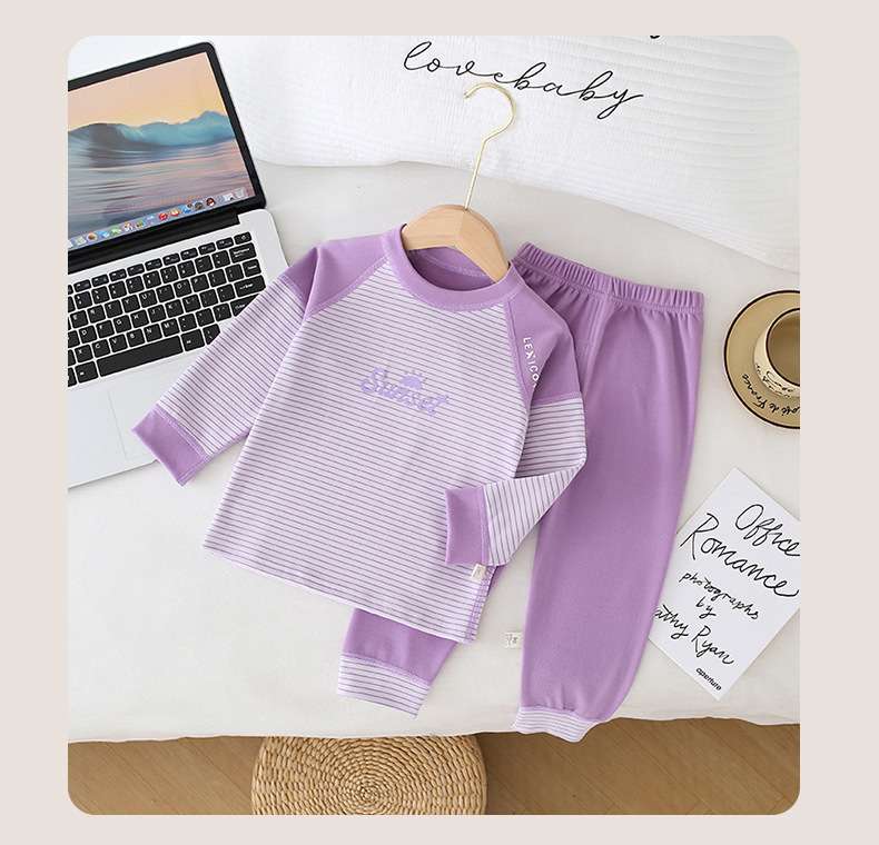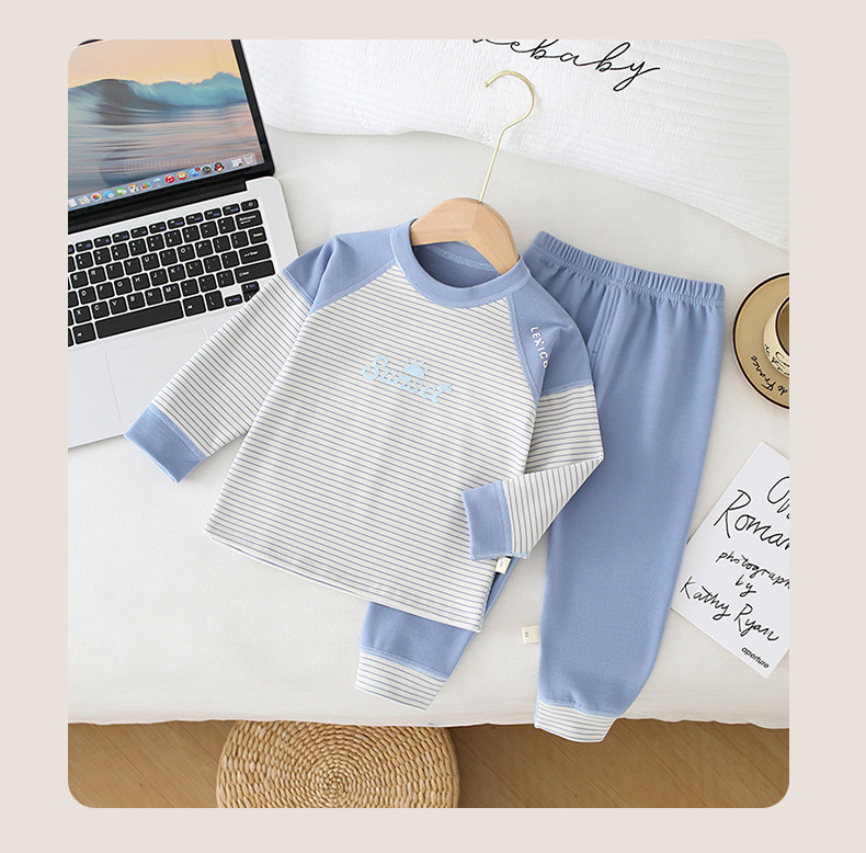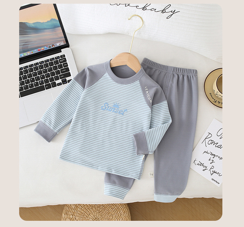 儿童条纹无骨保暖内衣套装男女童秋衣秋裤家居服
