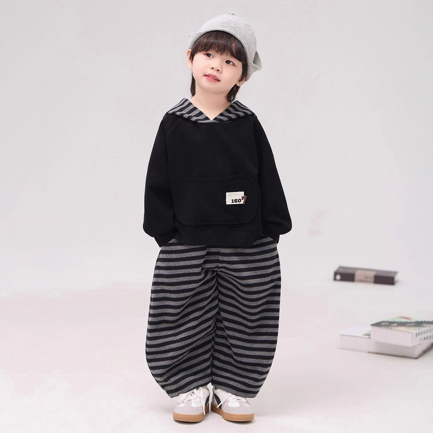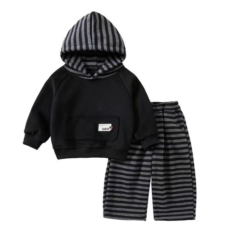 儿童条纹卫衣套装春秋新款洋气男童女童秋装连帽卫衣裤子两件套