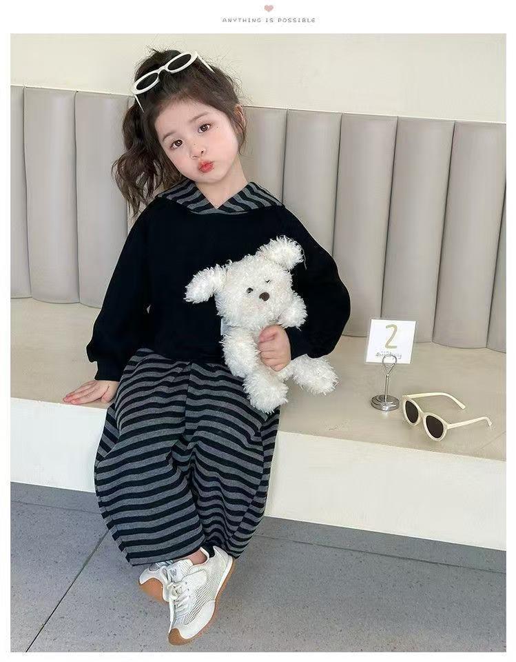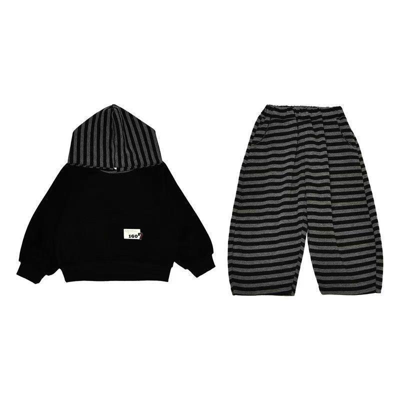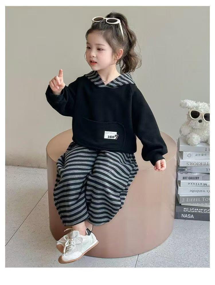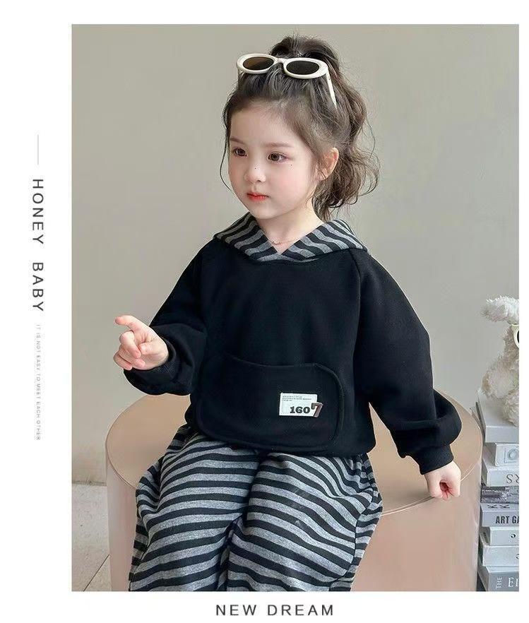 儿童套装秋款2025新款儿童洋气连帽卫衣条纹裤女童男童秋季两件套
