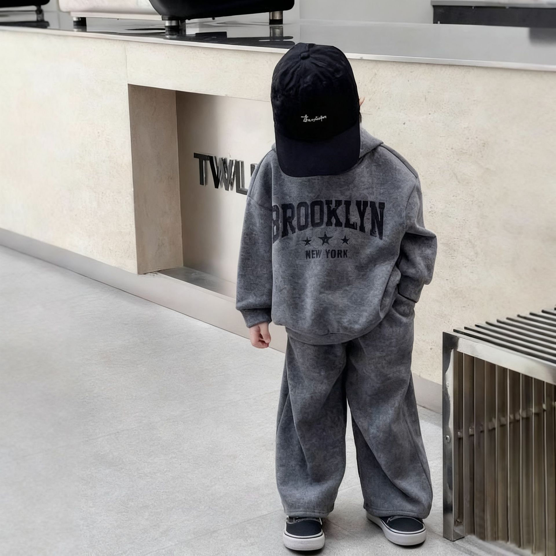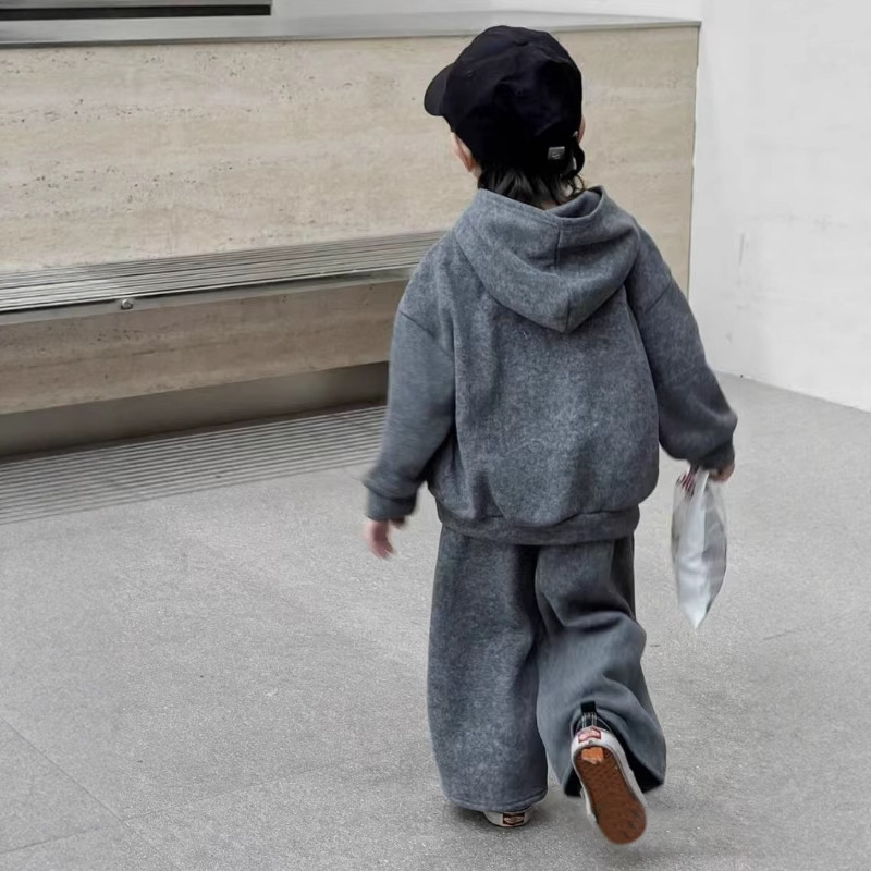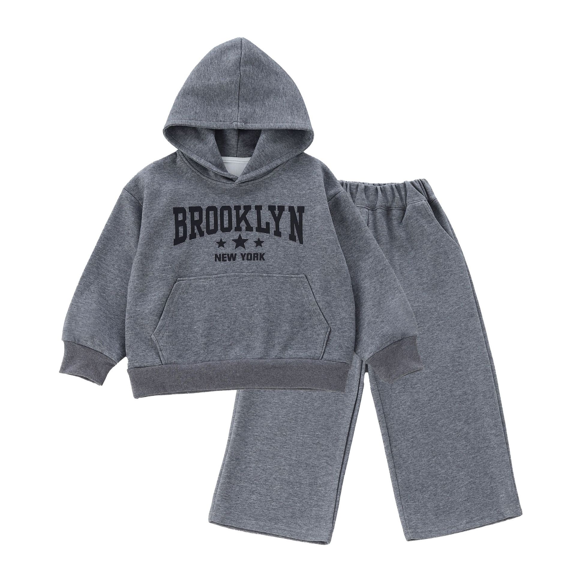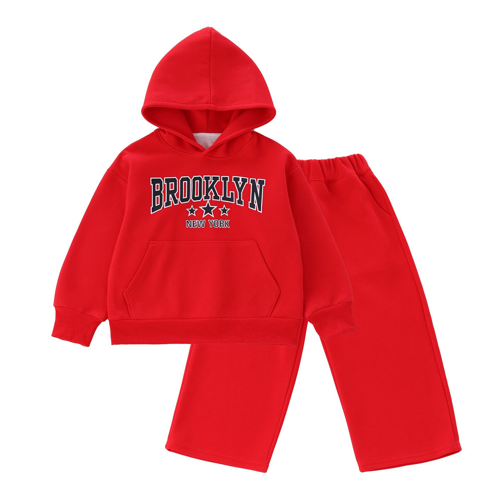 儿童卫衣套装春秋新款男童女童时尚潮流字母图案连帽卫衣裤两件套