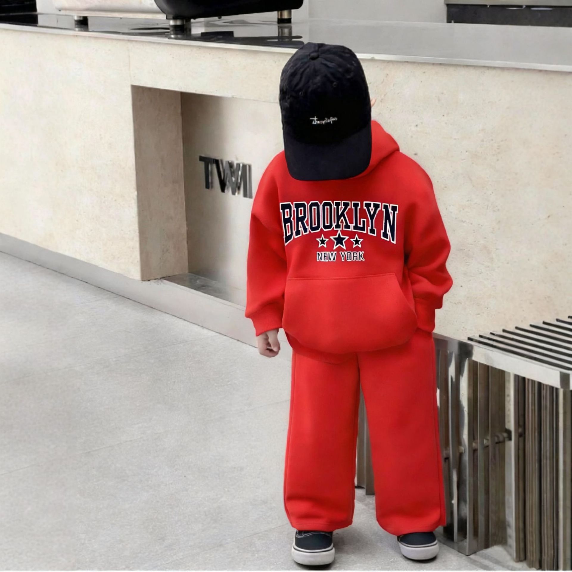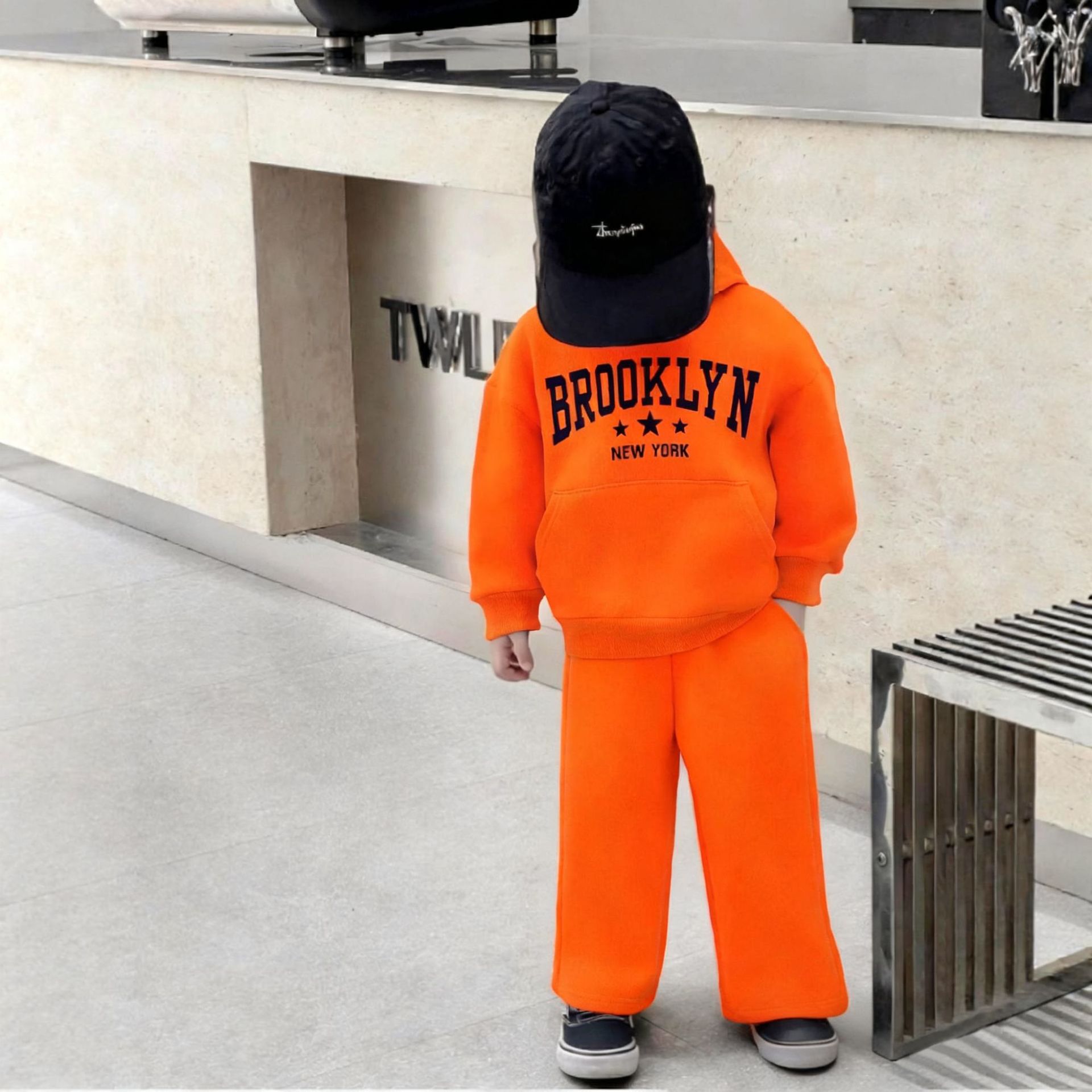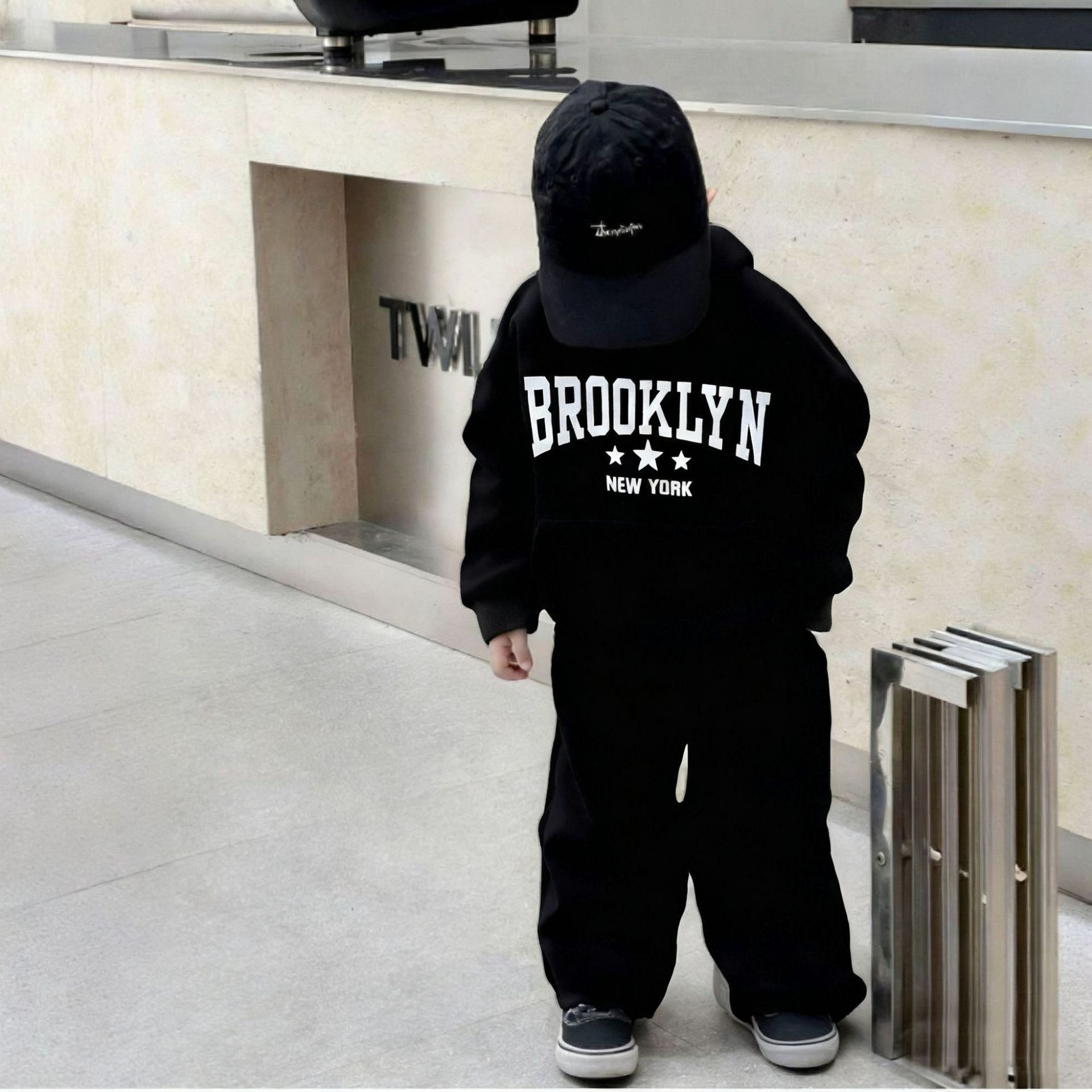 儿童卫衣套装春秋新款男童女童时尚潮流字母图案连帽卫衣裤两件套