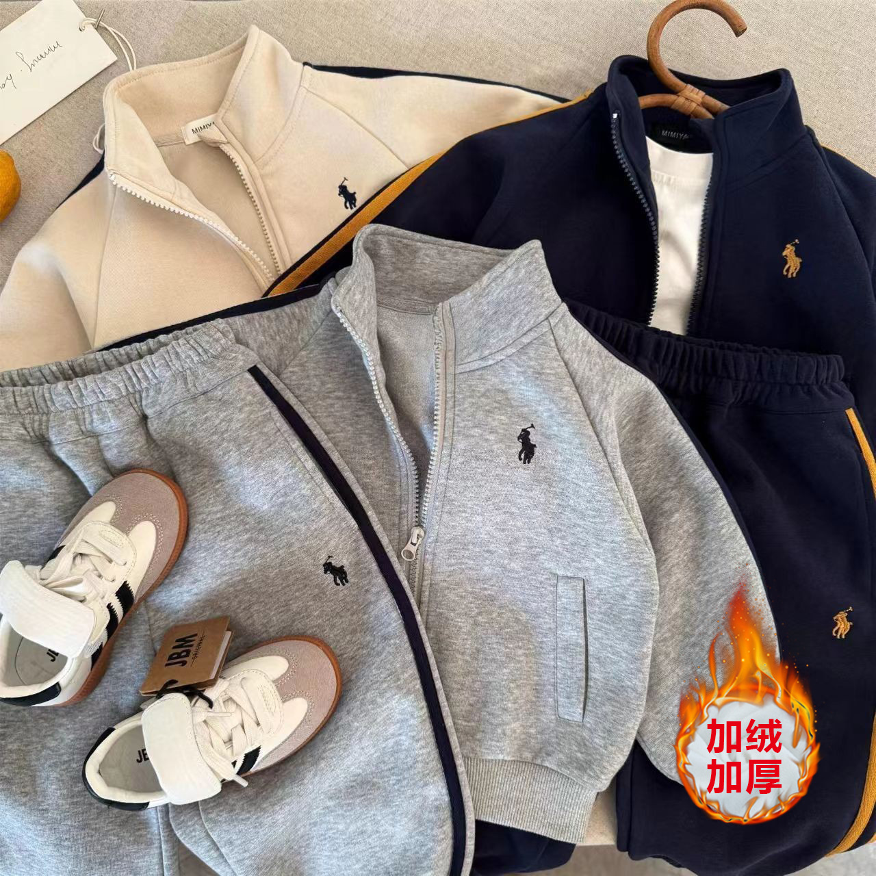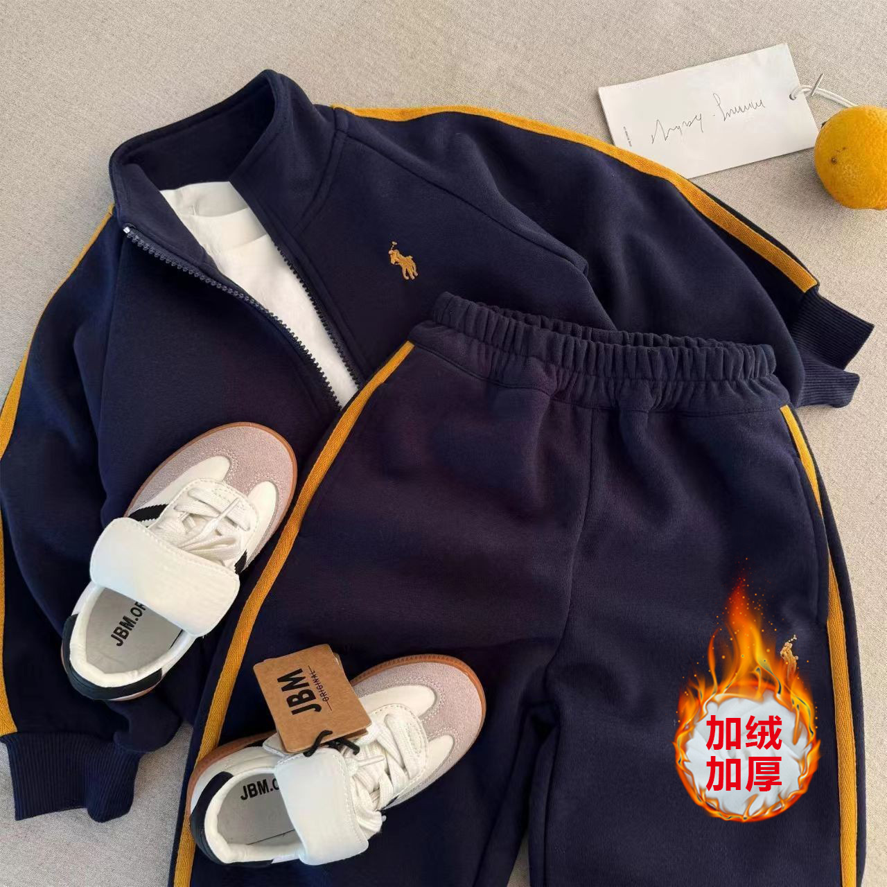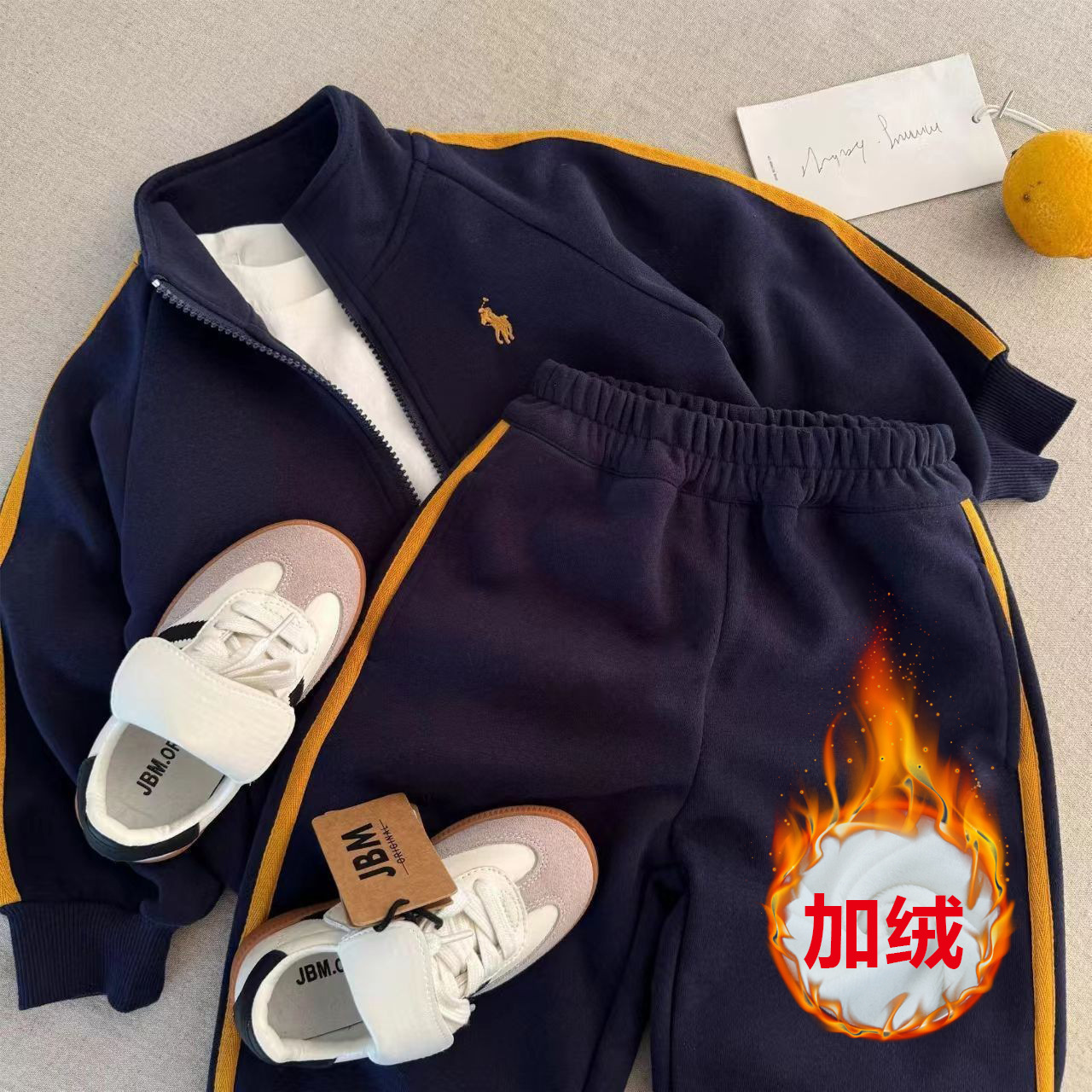 儿童加绒套装秋新款2025洋气秋卫衣韩版酷帅束脚裤童装儿童两件套